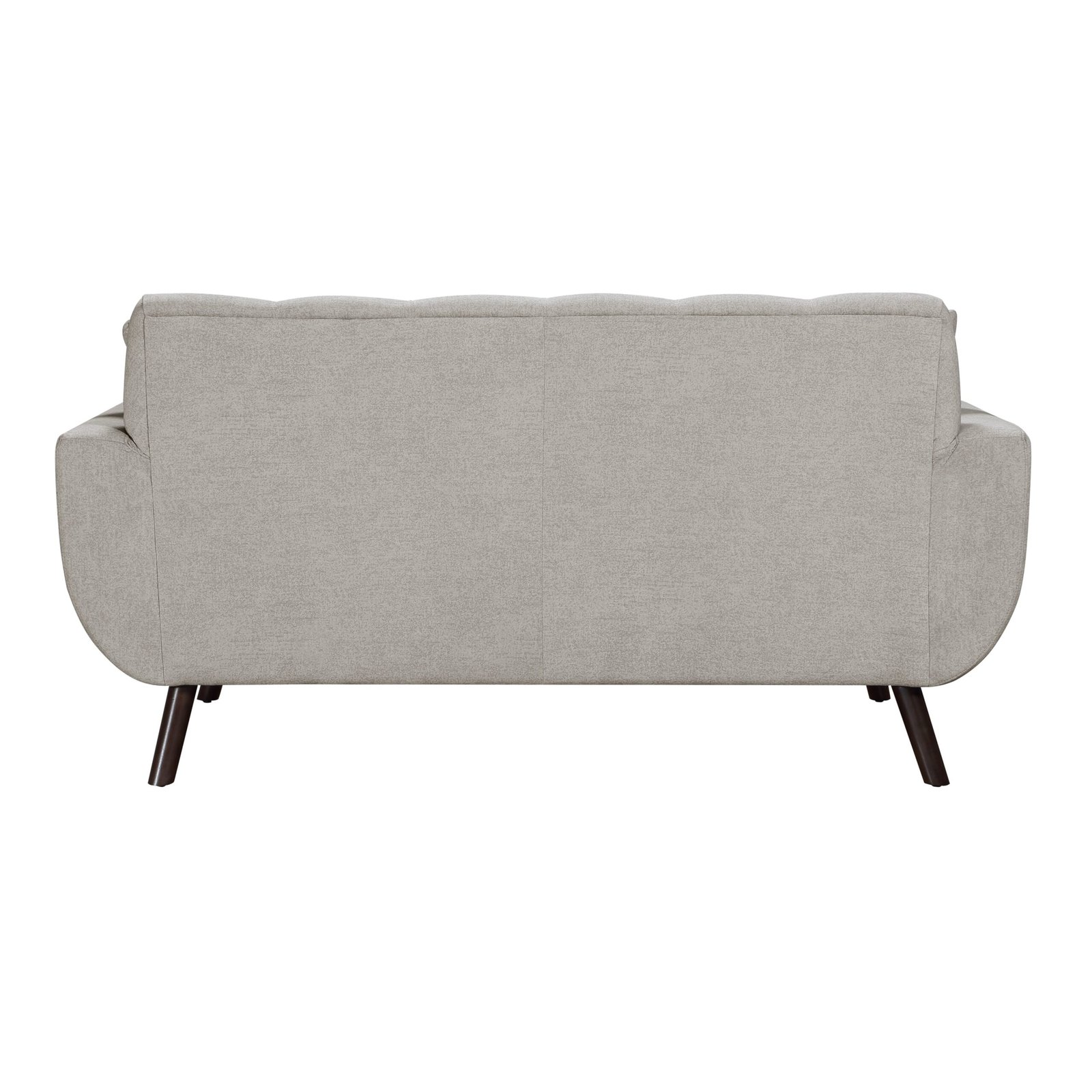 Timeless design never goes out of style, and the classic look of the Janne Collection follows the mid-century aesthetic of clean lines and modern sensibility. Tan textured microfiber upholstered fabric covers the retro-inspired frames of the love seat, with geometric print toss pillows and walnut-finished wood legs providing complementing accent to the group. Contour stitching lends scalloped detail to the seatback’s profile, and front, while the prominent framing of the collection’s arms solidifies the Mid-Century Modern look. The collection also features reversible seat cushions.