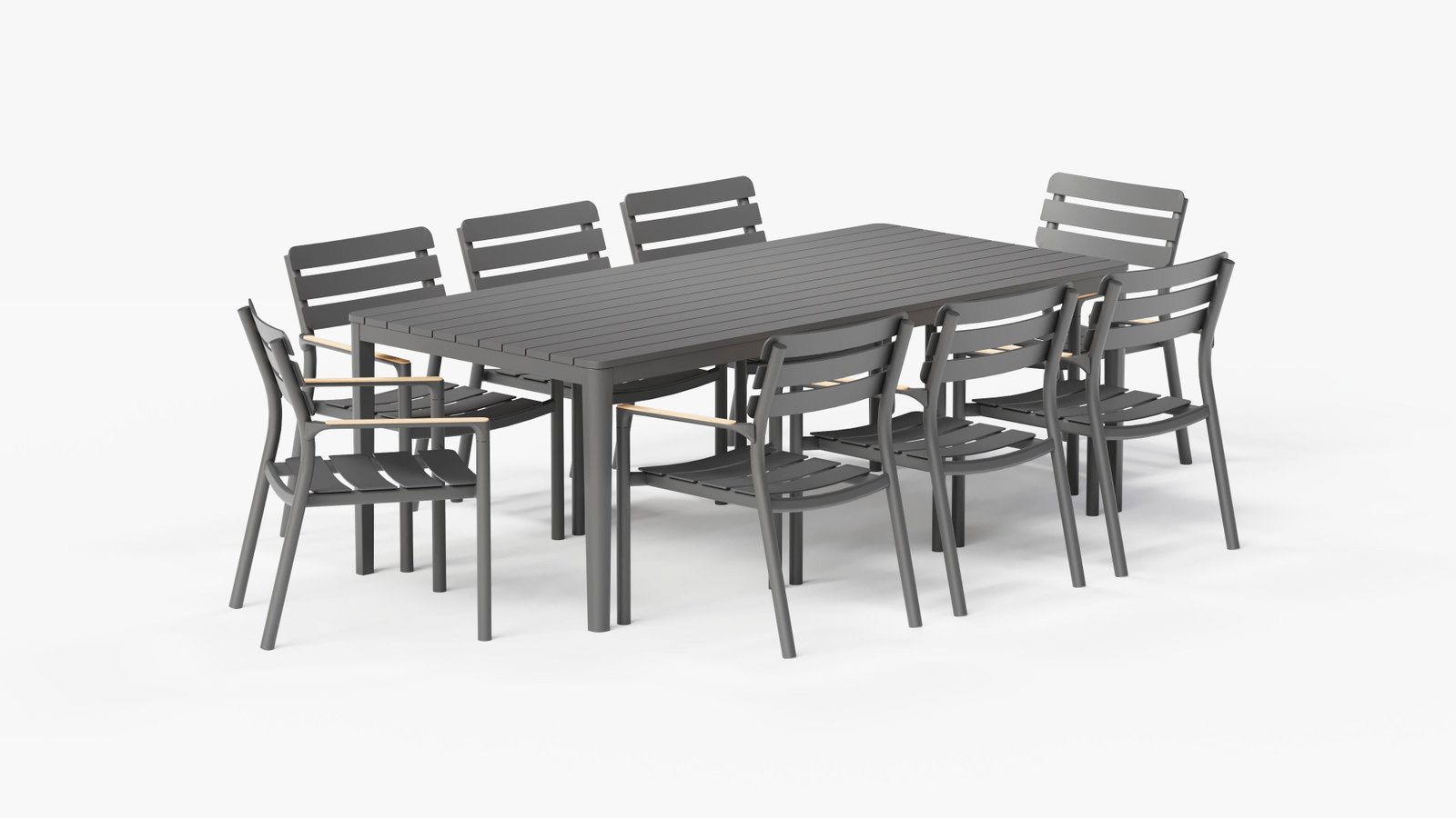 Aluminum Outdoor Rectangular Dining Table + 8 595 Dining Armchairs
