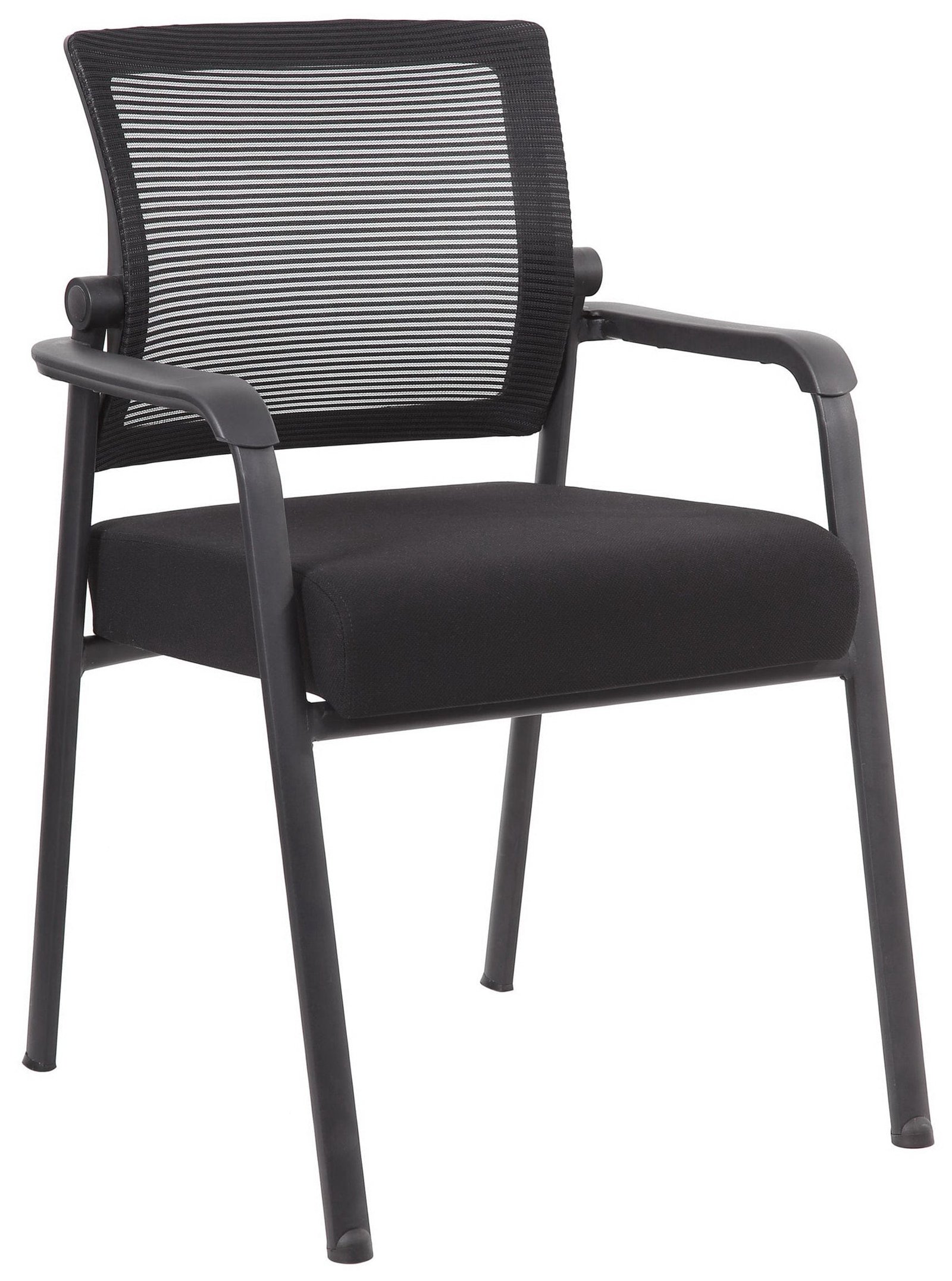 Finally, a contemporary mesh guest chair that won’t break the bank. Boss’s black mesh guest chair is an excellent addition to any room or office. It has a fixed seat height with fixed arms and is designed with an upholstered fabric seat and a breathable mesh back. The chair has a steel tubular frame with plastic floor guides, allowing smooth movement across many flooring surfaces. You can also choose easy-rolling casters instead of glides for a minimal upcharge. With a weight limit of 275 lbs, this guest chair adds a modern and professional appearance to any space.