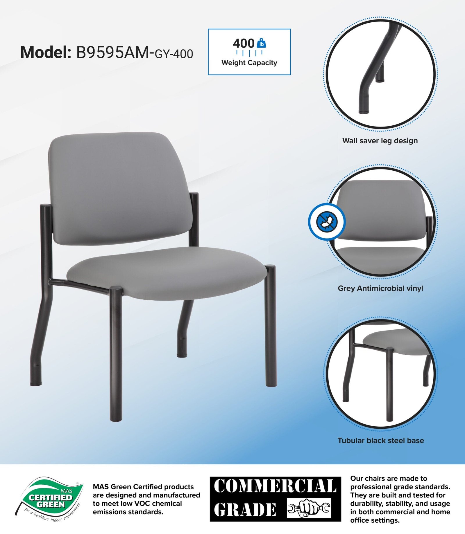 ![Boss Armless Guest Chair 400 lb Weight Capacity, Antimicrobial Grey Vinyl [B9595AM-GY-400] - Image 5](https://morviena.store/wp-content/uploads/2026/03/boss-armless-guest-chair-400-lb-weight-capacity-antimicrobial-grey-vinyl-b9595am-gy-400-1210044862.jpg)