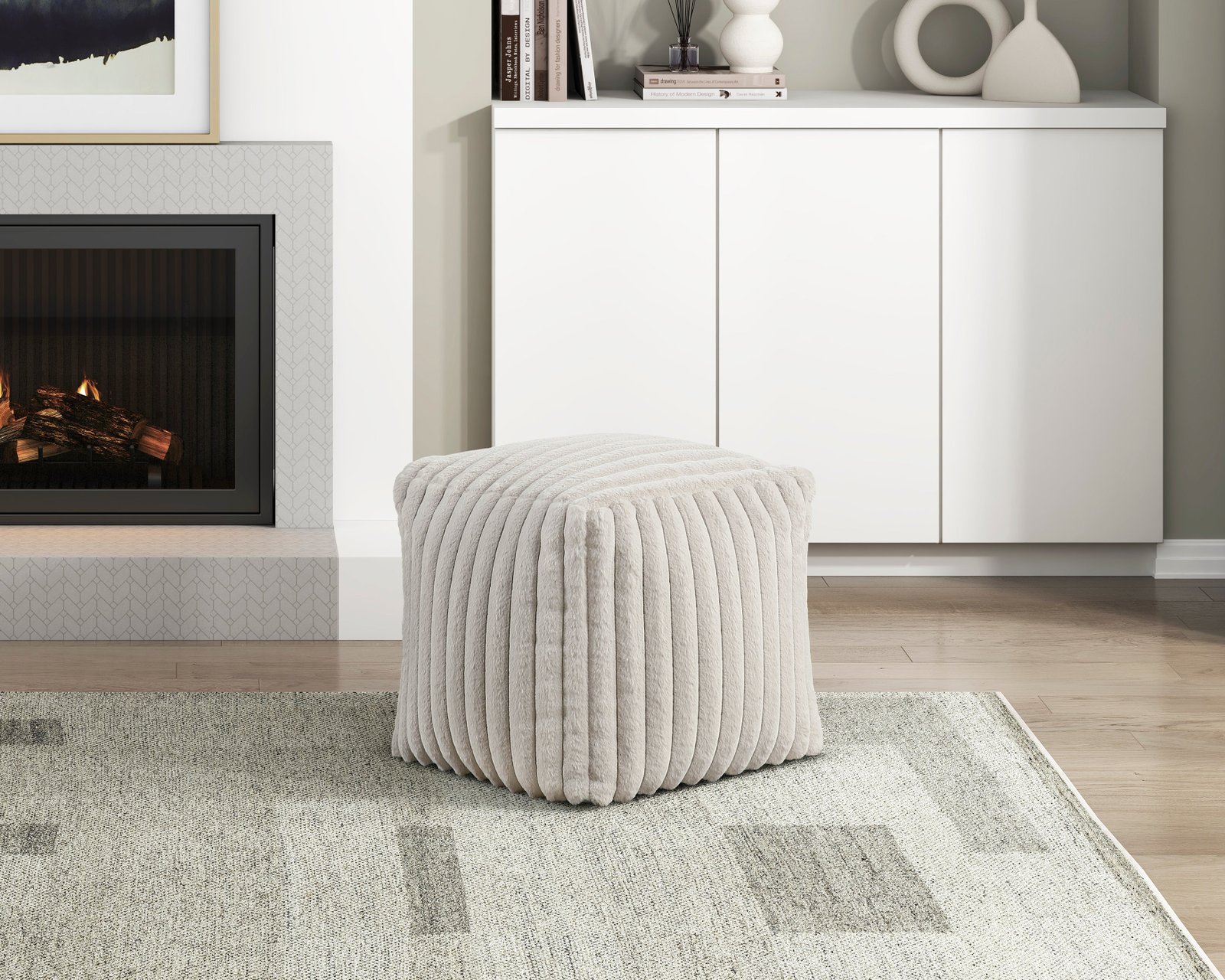 Whether the Simpsonville Collection serves to provide stylish accent to your home’s décor, convenient seating when the need arises, or as perfect place to put up your feet, the square accent pouf’s versatility of purpose makes it a convenient addition to your space. The pouf is covered in plush off-white wide wale corduroy fabric upholstery.
