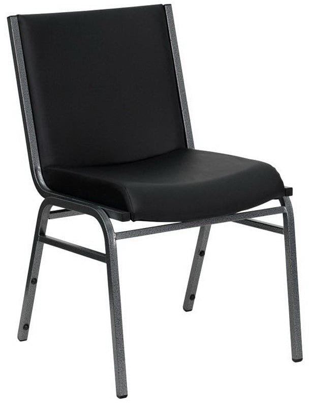 This Hercules heavy-duty stacking chair features high-density foam and can hold weight capacities of 550 lbs.Â