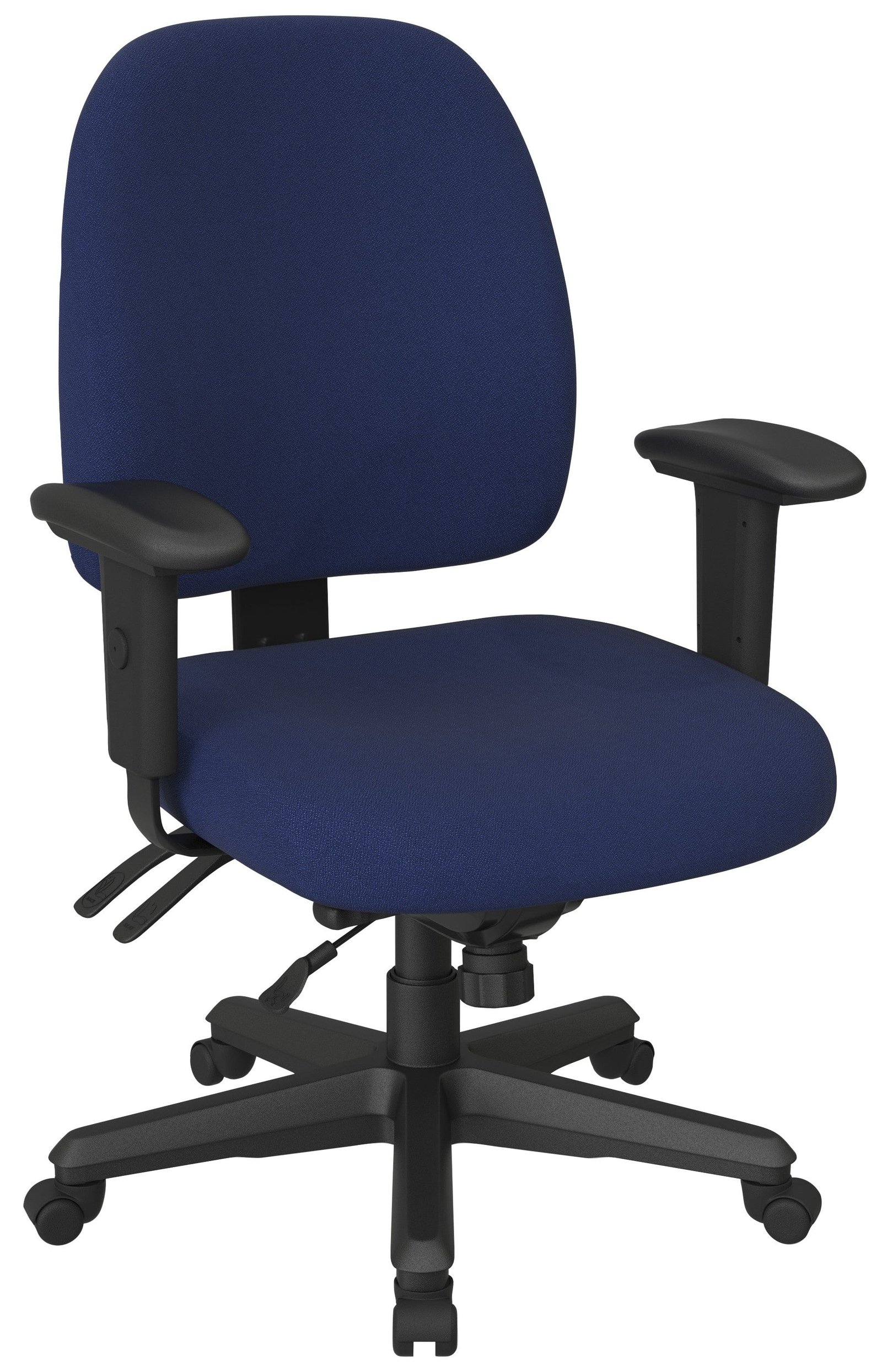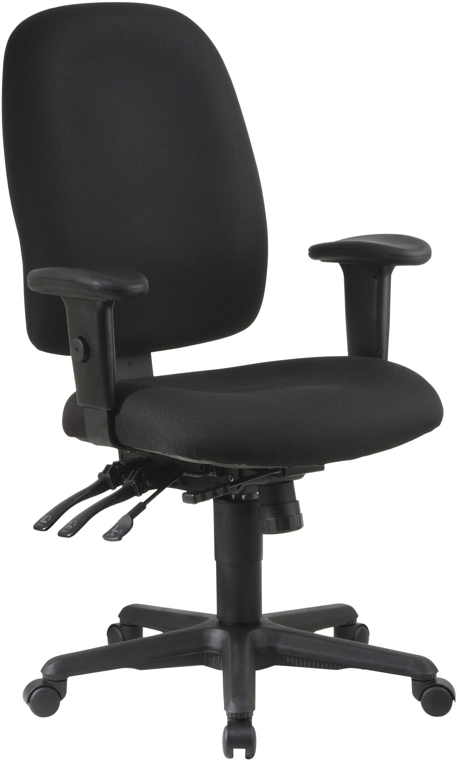 This high back ergonomic desk chair features multi-function control with three levers. This means you can modify the angle of the back relative to the seat and control tilt and forward tilt for keyboard intensive activities.