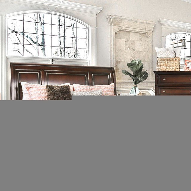 This stylish bedroom set features a gorgeous bed with storage drawers. The bed features a rich dark cherry finish and slightly curved headboard. The matching night stand provides USB and power outlet on the top drawer for convenience.