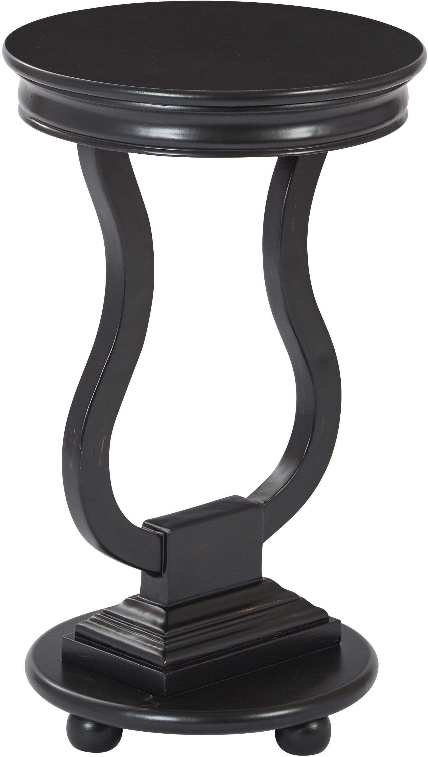 Elevate your decor with the Office Star OSP Designs Chase Round Accent Table. Featuring a unique brushed black finish, this round table is a versatile addition to any room. Use it as an elegant nightstand or to add a sophisticated touch to your living space. Made with engineered wood and fully assembled, this table is both stylish and convenient. Exclusively designed for residential use.