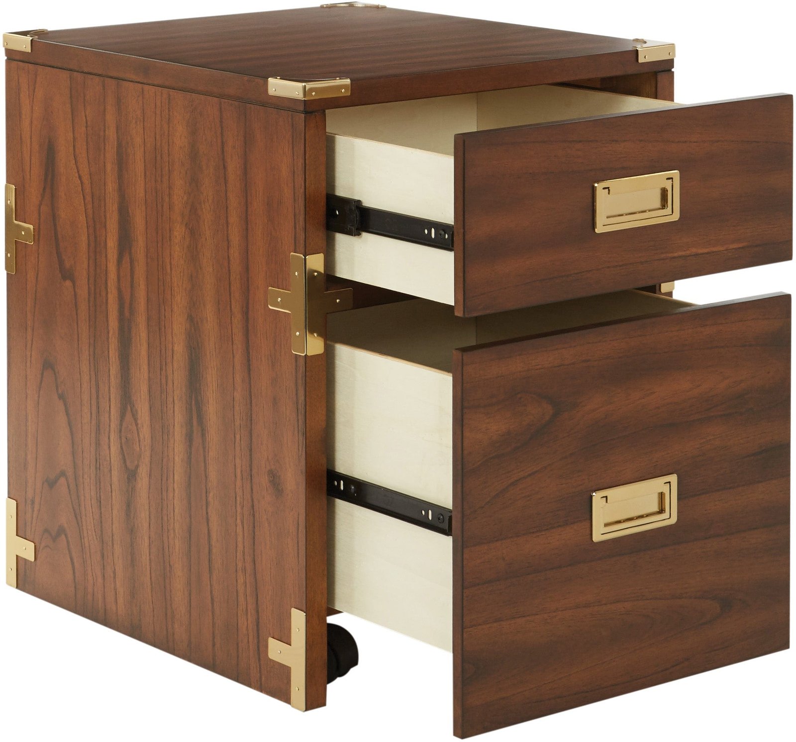 Ensure you keep all your essential documents in one place with the Wellington 2-drawer file cabinet. It boasts a campaign-style design with elegant metal hardware accents and classic detailing that adds to its timeless beauty. The file cabinet features a single drawer that accommodates both letter and legal size files, while the extra storage drawer provides ample space to keep your office supplies organized. Stay on top of your work and maintain a neat office with the Wellington 2-drawer file cabinet.
