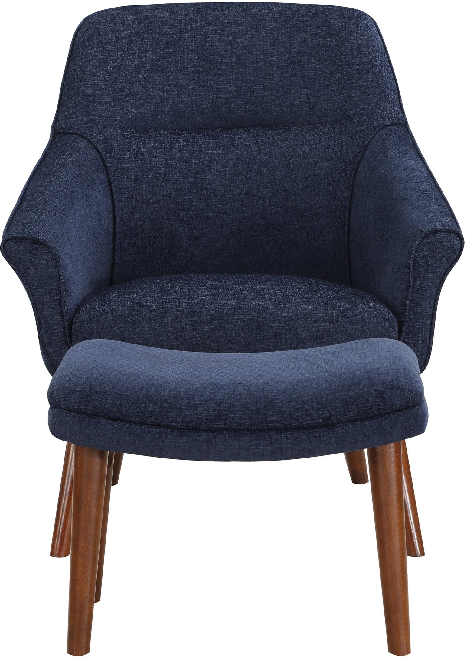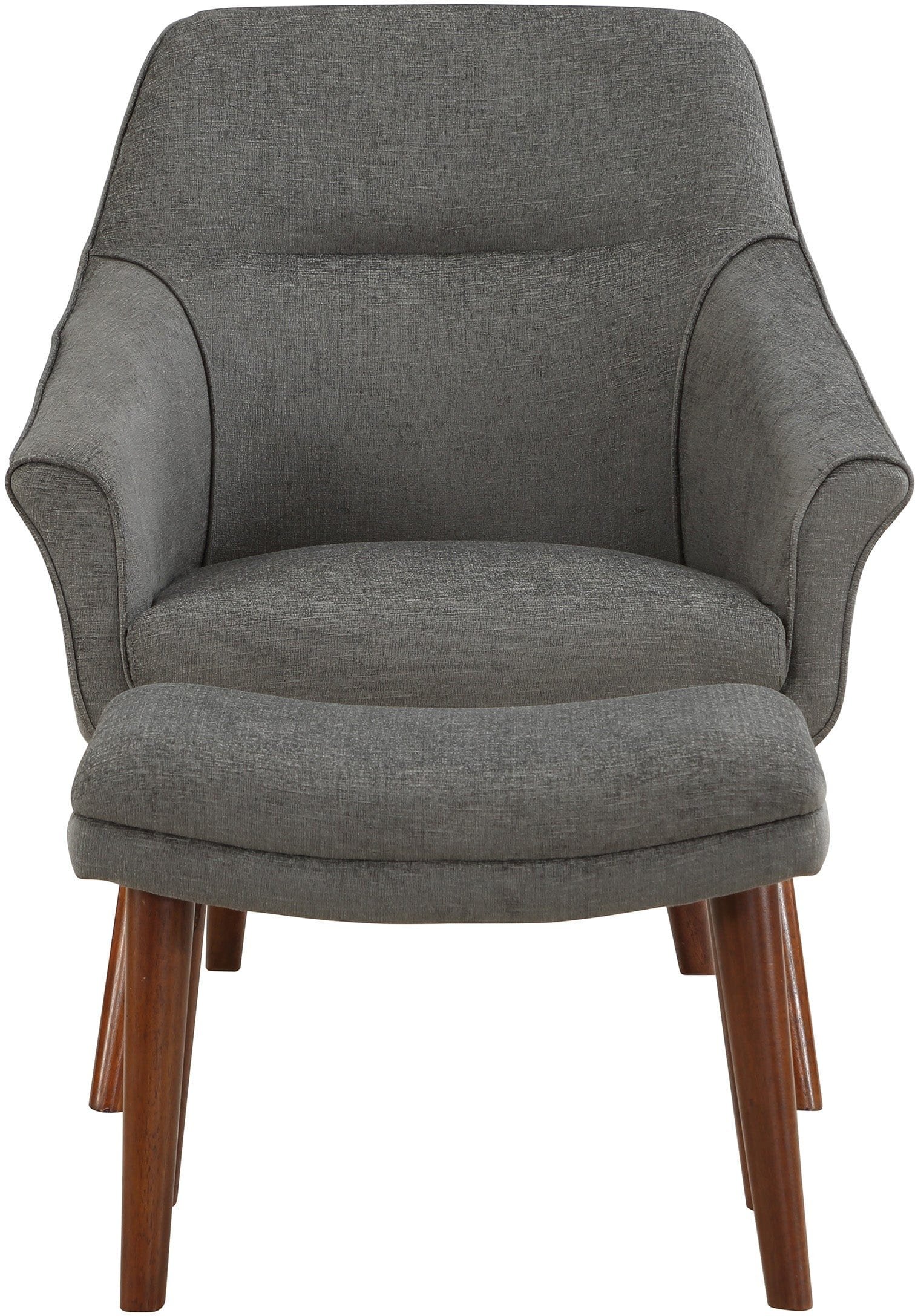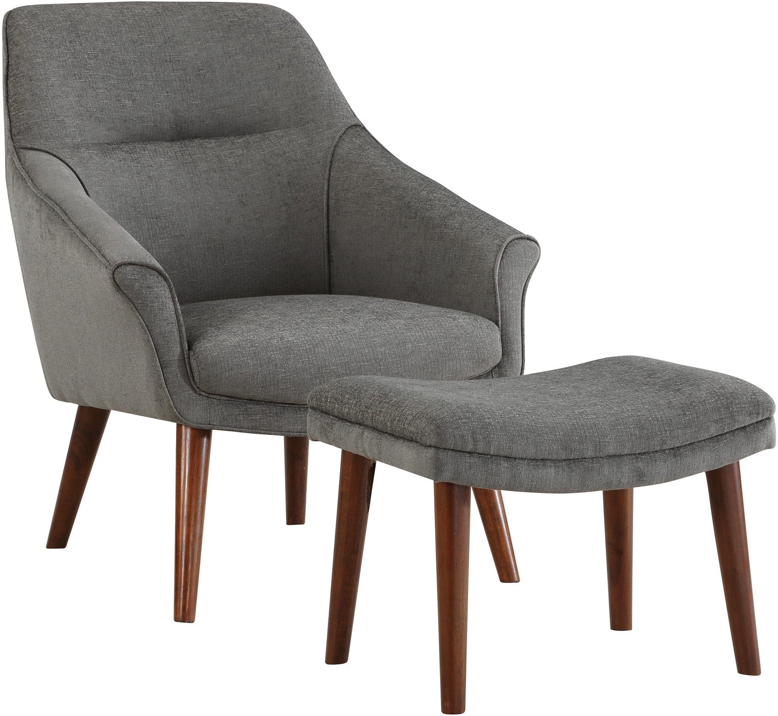 Looking to add a touch of sophistication to your living space? Look no further than our Waneta Chair and Ottoman Set. This Mid-Century Modern-inspired set features an elegant, contoured high back, open-angled arms, and a tall, tapered leg design for a refined and tailored look. The matching ottoman adds a casual and relaxed vibe to the set. Perfect for a family room or living room, but also stylish enough for apartment living. Our easy-care 100% polyester fabric comes in a range of trending colors to help you create your own contemporary style. With quick and easy delivery and assembly, you can enjoy your new set in no time.