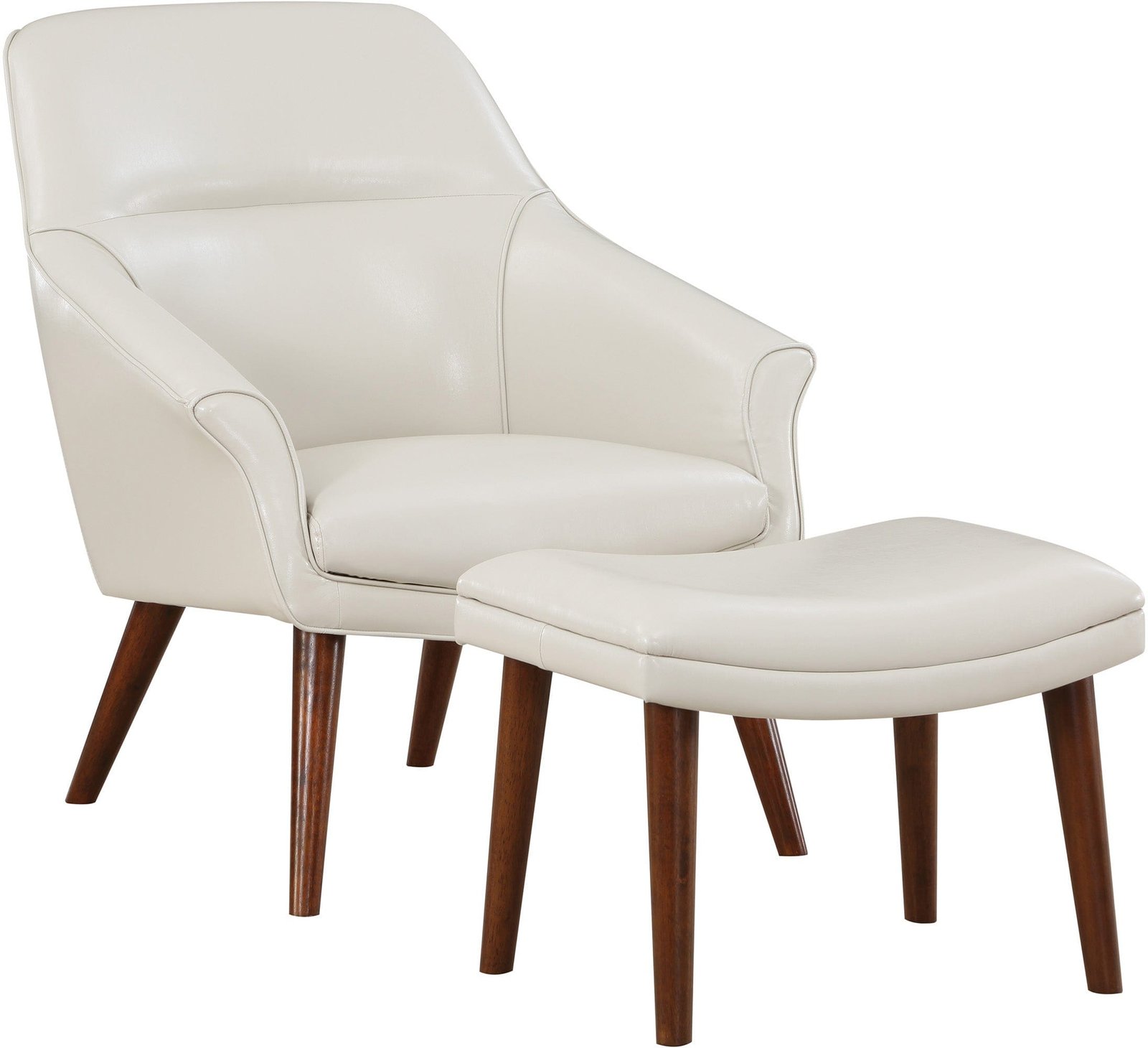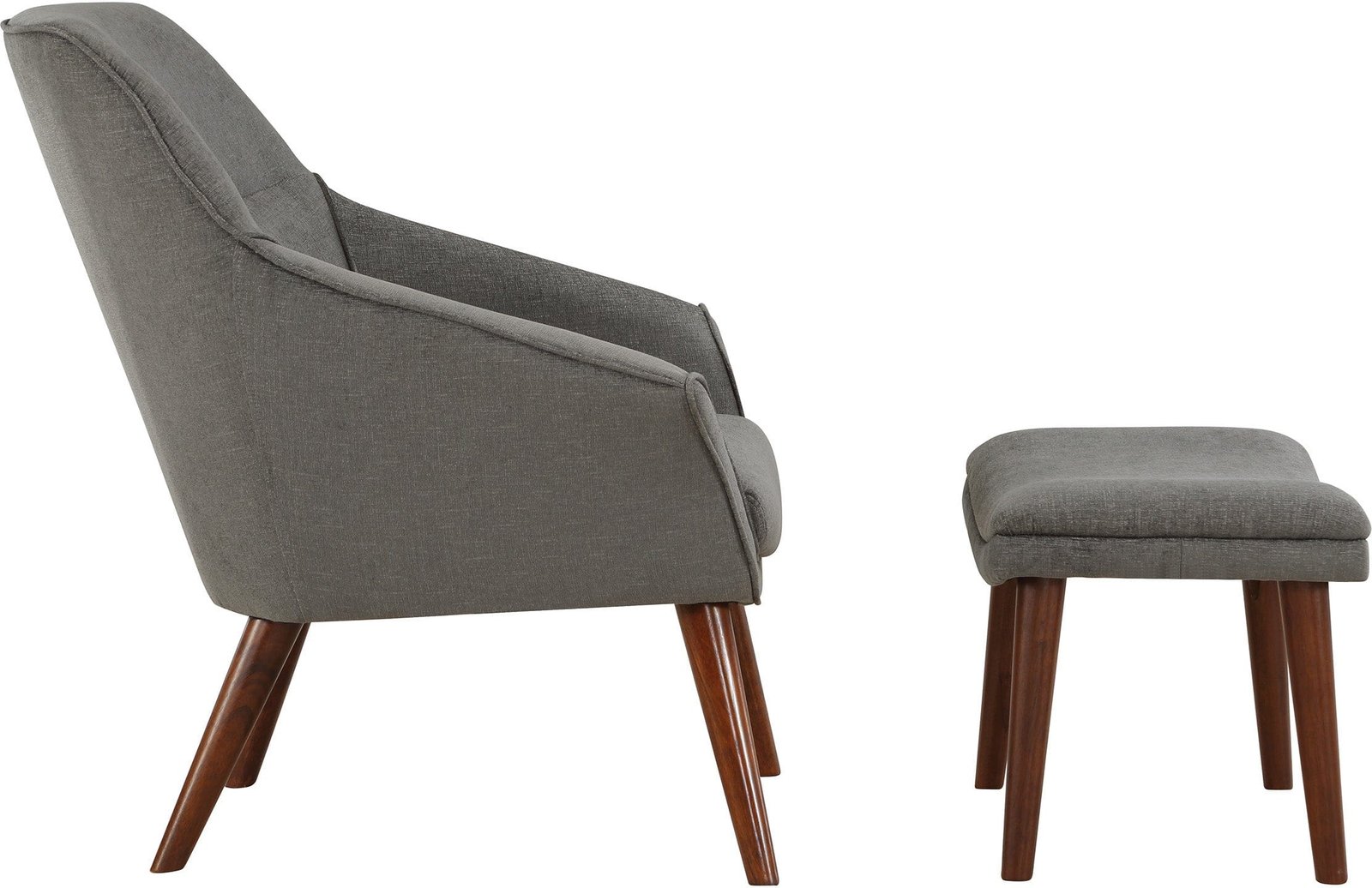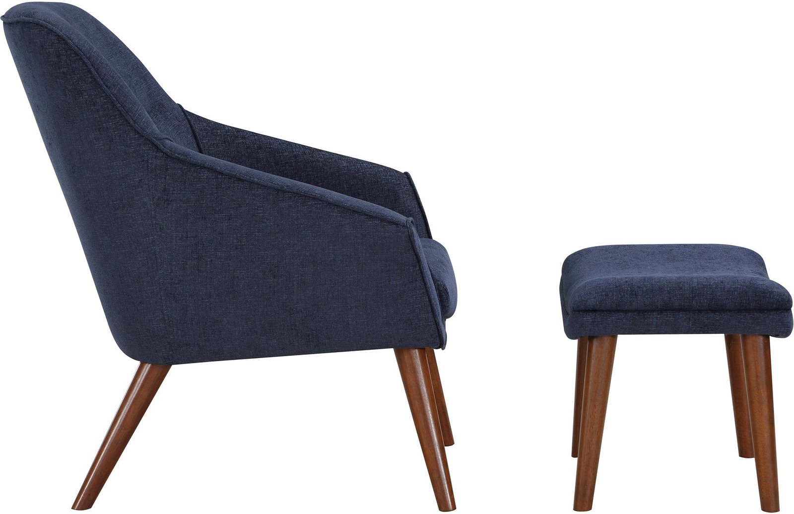 Looking to add a touch of sophistication to your living space? Look no further than our Waneta Chair and Ottoman Set. This Mid-Century Modern-inspired set features an elegant, contoured high back, open-angled arms, and a tall, tapered leg design for a refined and tailored look. The matching ottoman adds a casual and relaxed vibe to the set. Perfect for a family room or living room, but also stylish enough for apartment living. Our easy-care 100% polyester fabric comes in a range of trending colors to help you create your own contemporary style. With quick and easy delivery and assembly, you can enjoy your new set in no time.