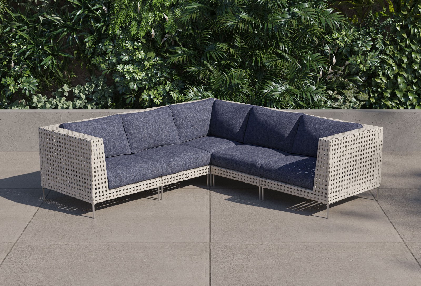 Open Weave Wicker Outdoor Corner Sectional – 5 Seat