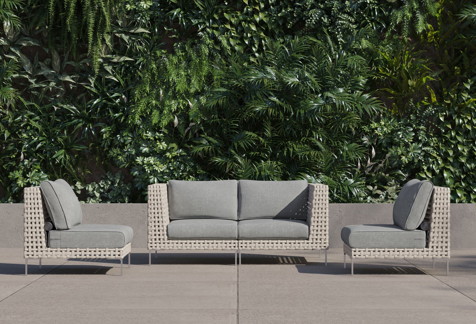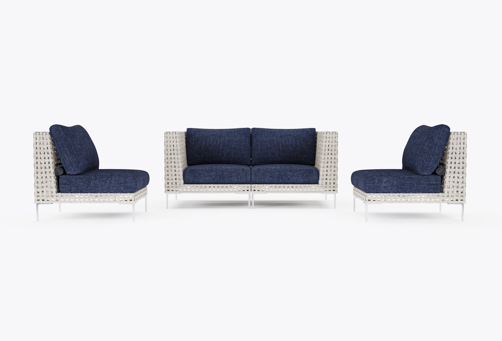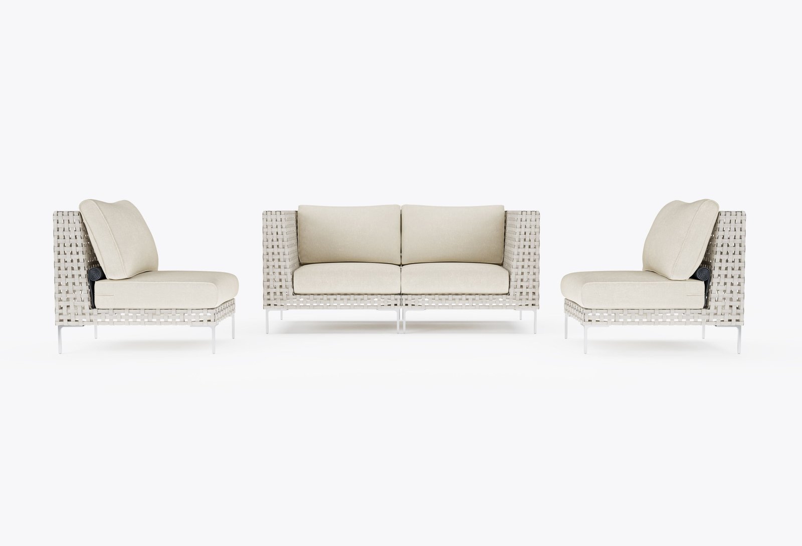 The Open Weave Wicker Collection offers a modern reinterpretation of traditional wicker, showcasing a stylish basket weave pattern with delicate spaces that add a contemporary touch. As aesthetically sophisticated and refined as it is, the Open Weave Collection is designed for unparalleled resilience. Its flat wicker is crafted from our signature handwoven All-Weather Wicker, while sleek Stainless Steel legs resist rust. The high-strength aluminum-magnesium alloy sub-frame is fortified to withstand harsh weather conditions and supports a weight capacity of up to 400 pounds.