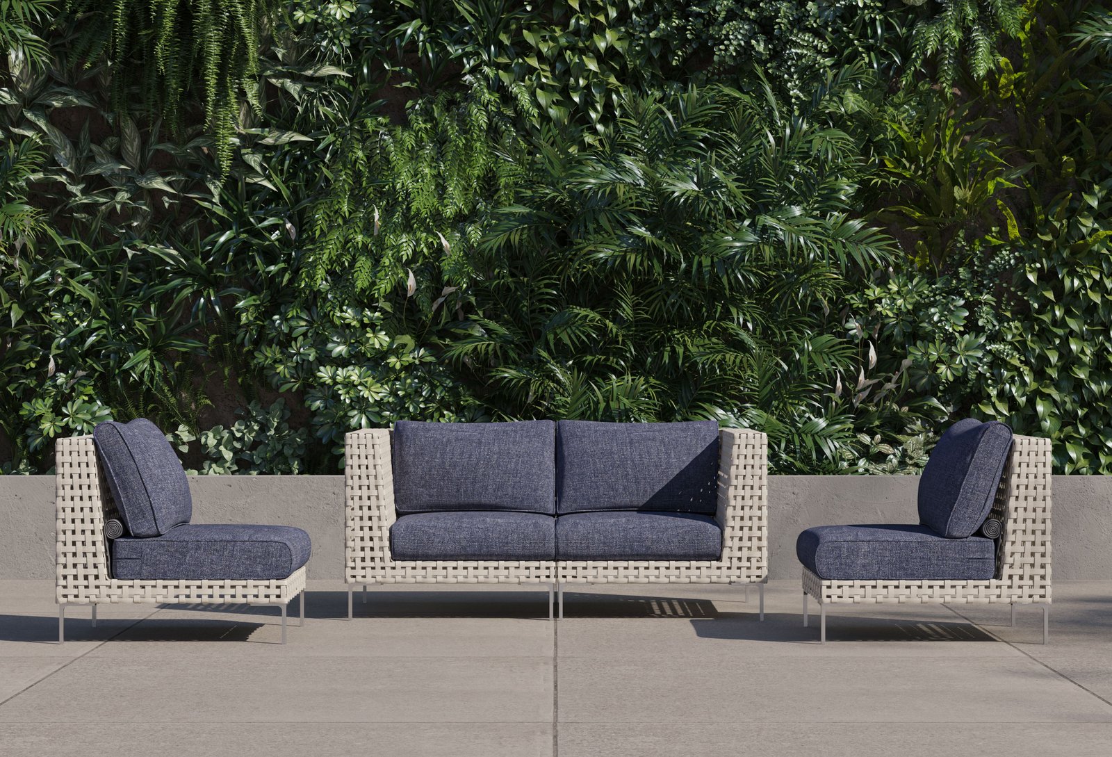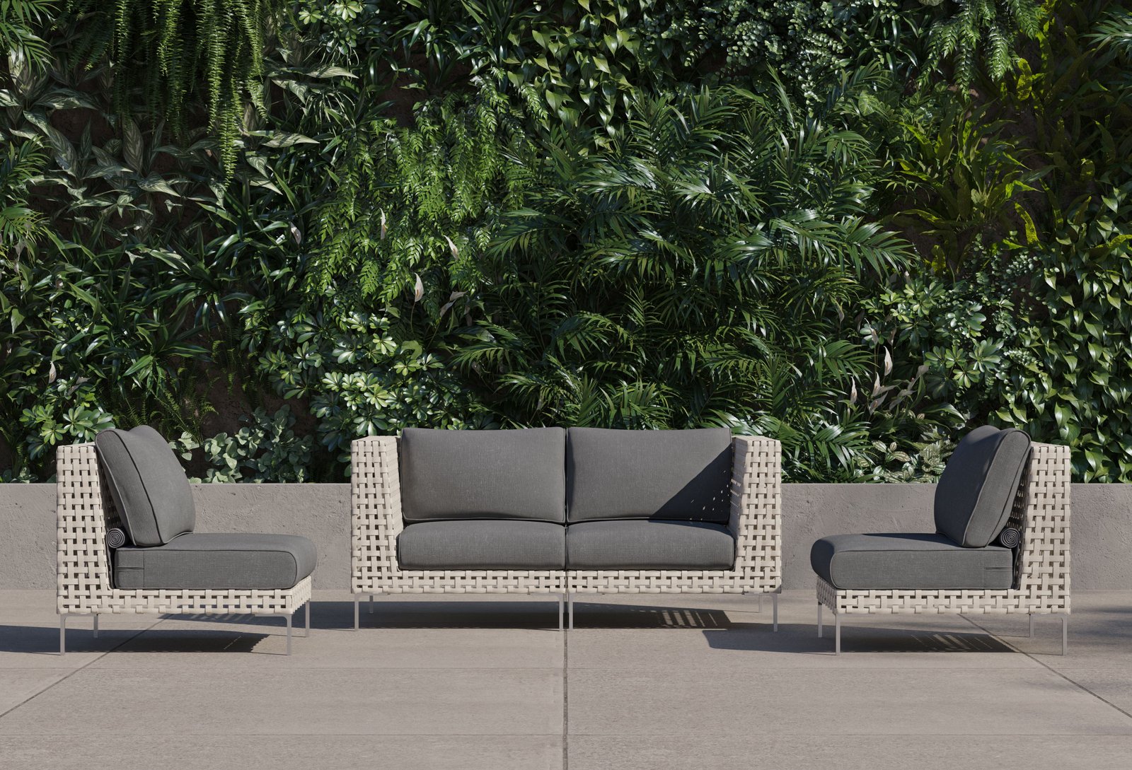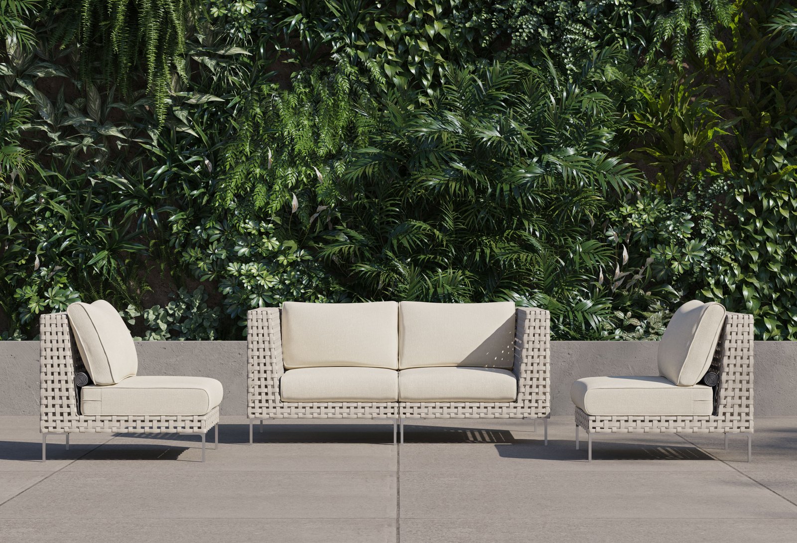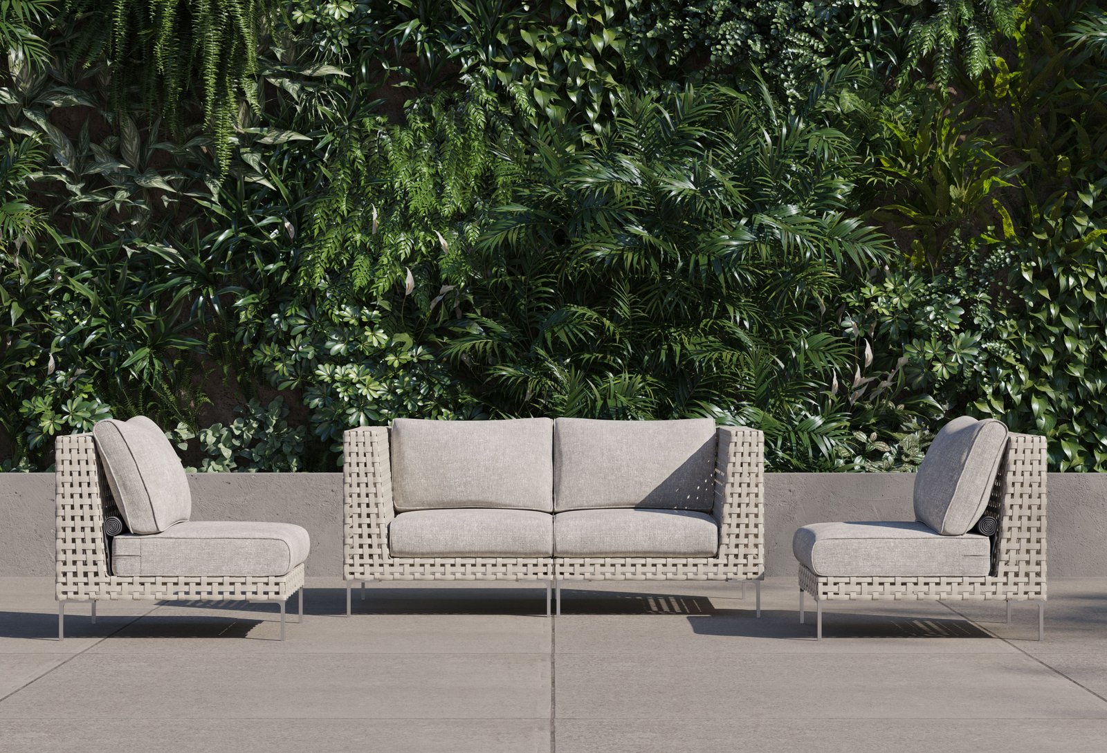 The Open Weave Wicker Collection offers a modern reinterpretation of traditional wicker, showcasing a stylish basket weave pattern with delicate spaces that add a contemporary touch. As aesthetically sophisticated and refined as it is, the Open Weave Collection is designed for unparalleled resilience. Its flat wicker is crafted from our signature handwoven All-Weather Wicker, while sleek Stainless Steel legs resist rust. The high-strength aluminum-magnesium alloy sub-frame is fortified to withstand harsh weather conditions and supports a weight capacity of up to 400 pounds.