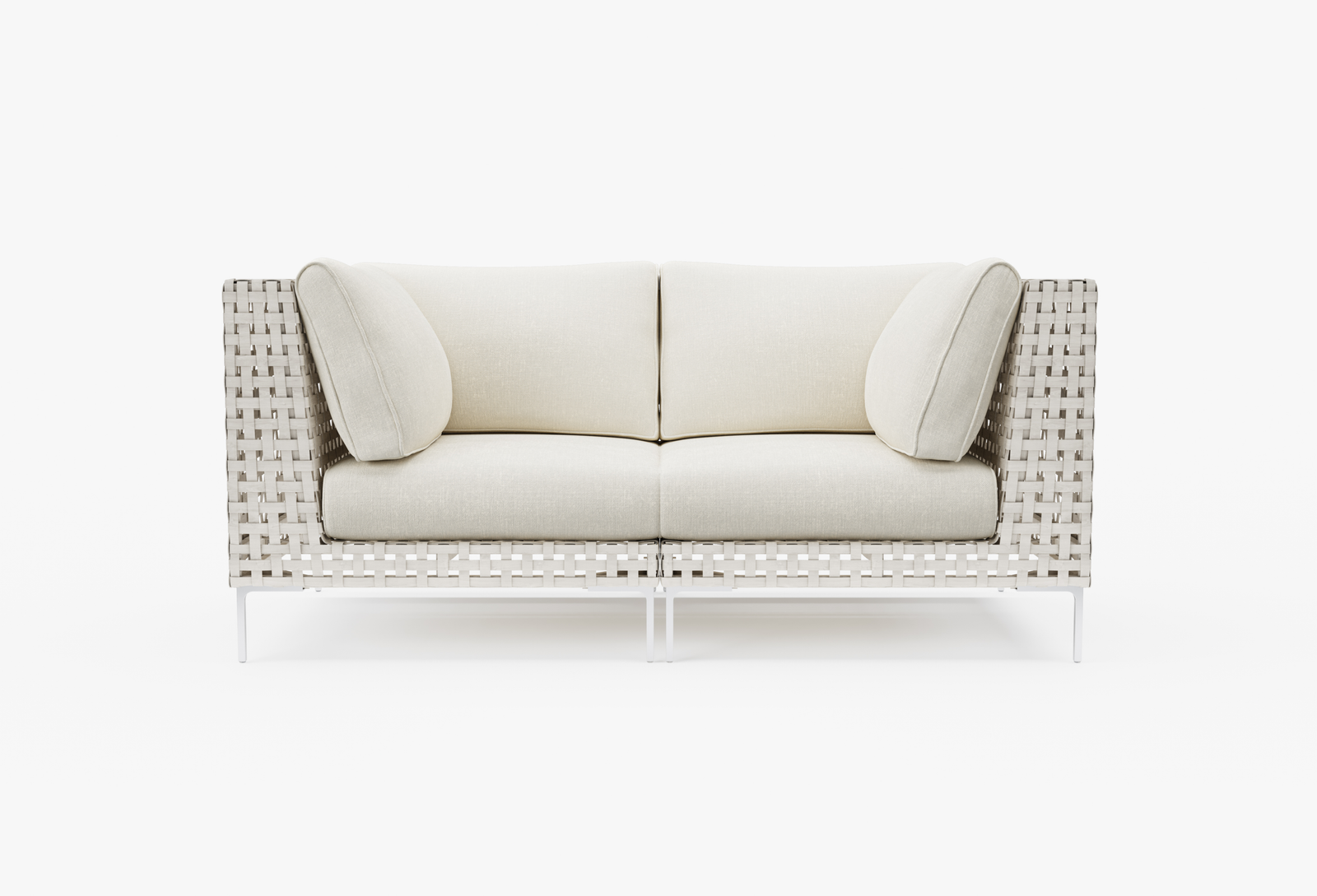 The Open Weave Wicker Collection offers a modern reinterpretation of traditional wicker, showcasing a stylish basket weave pattern with delicate spaces that add a contemporary touch. As aesthetically sophisticated and refined as it is, the Open Weave Collection is designed for unparalleled resilience. Its flat wicker is crafted from our signature handwoven All-Weather Wicker, while sleek Stainless Steel legs resist rust. The high-strength aluminum-magnesium alloy sub-frame is fortified to withstand harsh weather conditions and supports a weight capacity of up to 400 pounds.