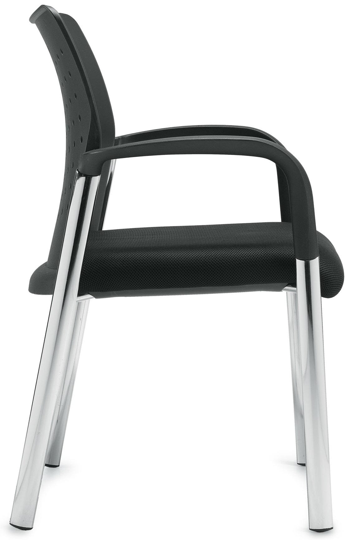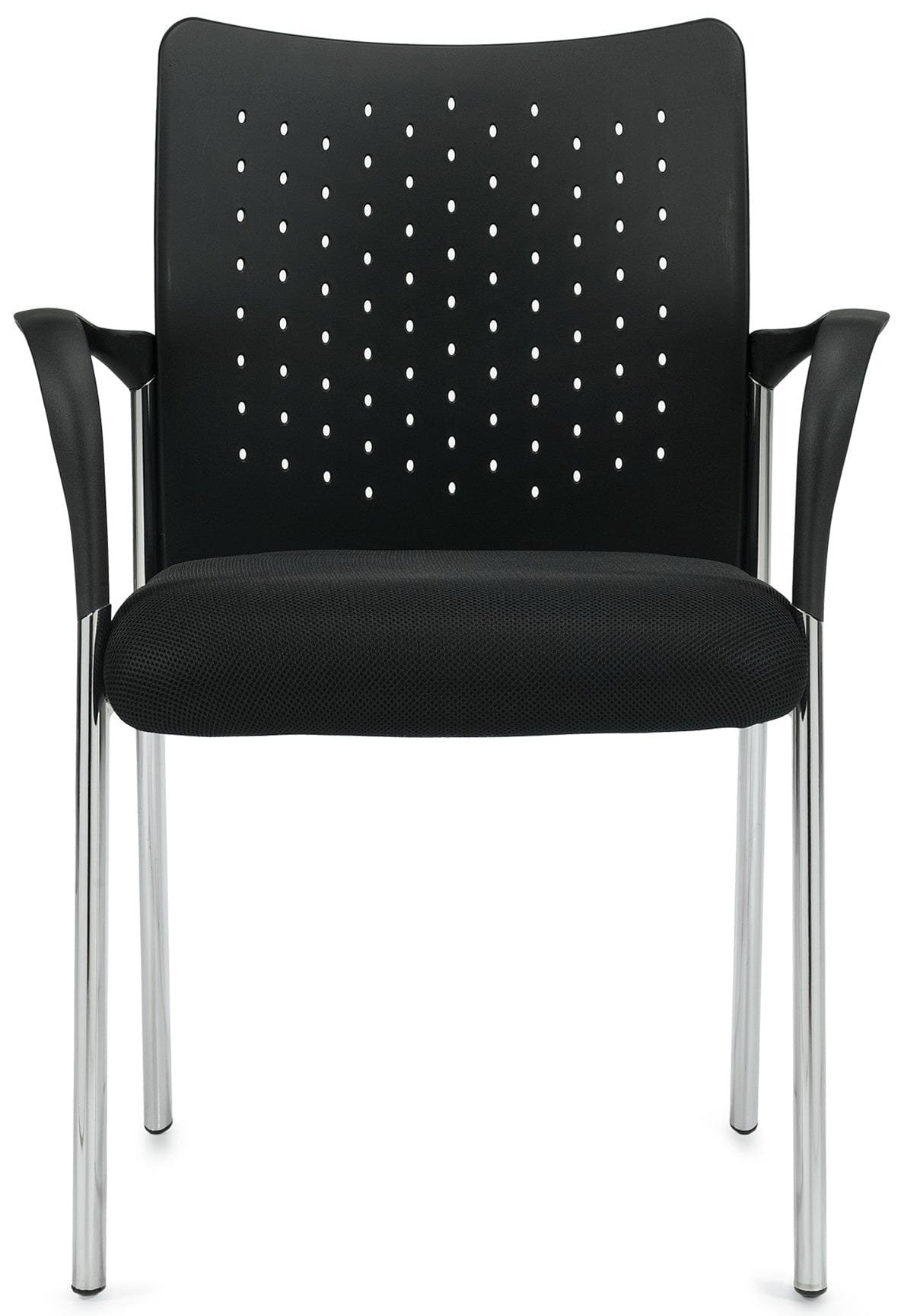 Make a lasting impression on your guests with this contemporary chair from Offices To Go! It features a perforated plastic back with a black mesh fabric seat, an oval tube chrome frame with molded armrests, and a waterfall seat edge. The chairs are packed two per carton and can be stacked up to five high.