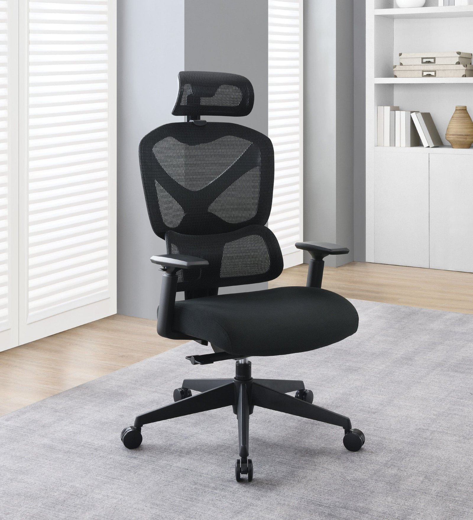 Transform your workspace with the ProLine II Mesh Back Managers Chair—engineered for professionals who demand performance. The breathable mesh backing keeps you cool during long work sessions, while the personalized adjustable headrest and three-position armrest system adapt to your unique comfort needs. Sink into the generously padded seat upholstered in resilient fabric that withstands daily use. One-touch pneumatic adjustment lets you dial in your ideal height instantly, and the intelligent synchro tilt mechanism with backrest lock provides responsive support without compromise. Glide effortlessly across your office on heavy-duty nylon casters, designed for use on carpeted surfaces. This is the chair that works as hard as you do.