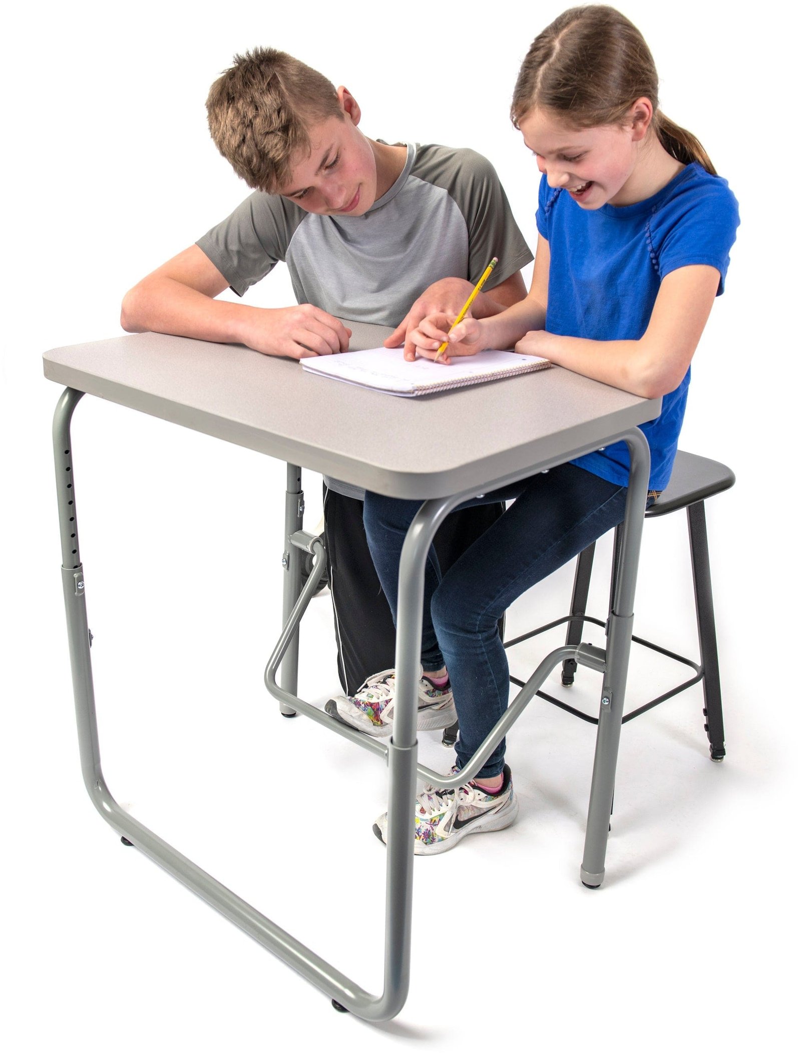 Looking for a versatile sit-to-stand desk that can keep your students active while they learn? Consider the AlphaBetter 2.0 Height Adjustable Student Desk with Pendulum Bar in either gray laminate or markerboard top. With a pendulum footrest, students can continue to move and redirect excess energy while seated, providing ergonomic support, increasing comfort, and promoting cardiovascular health. This student desk also comes with optional casters, making it easier to move around the classroom. Each desk can accommodate K-12th grade students, as well as adults, at seated height and K-4th grade students at standing height.