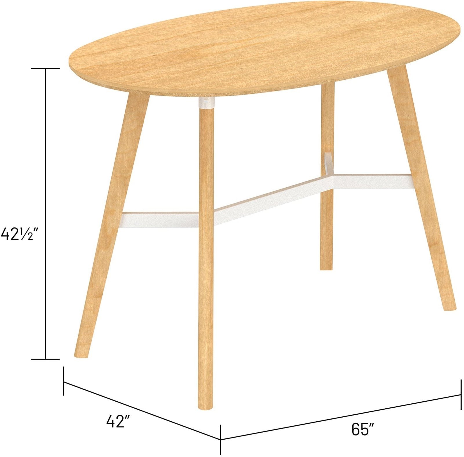- Legs and bases are solid wood (Light Maple) with a natural finish