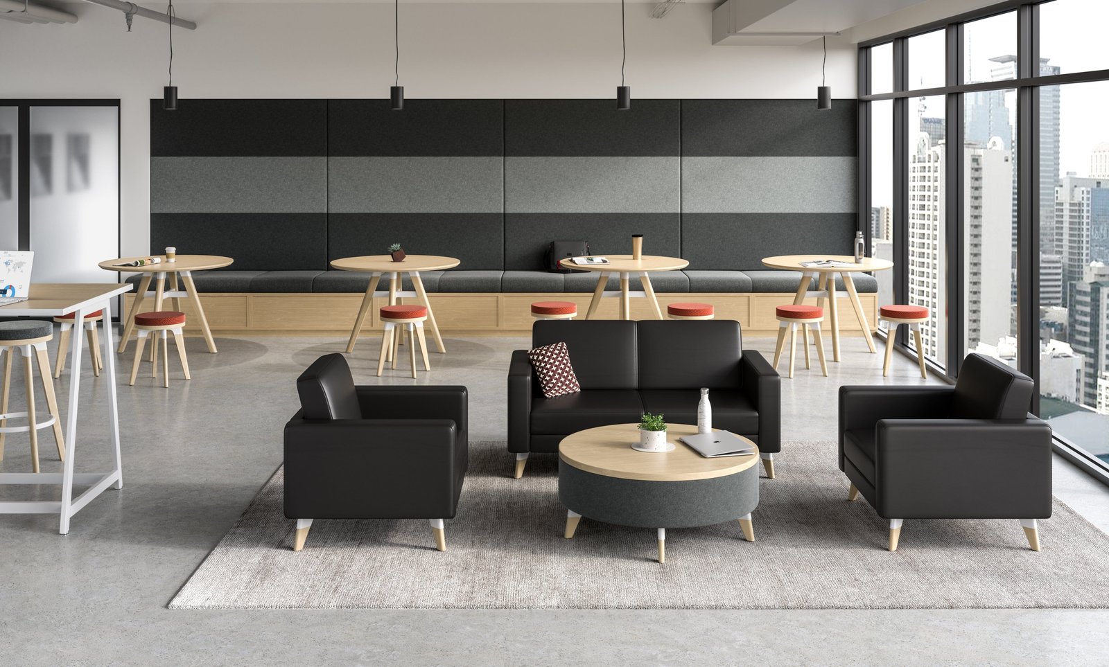 The Safco Lounge Settee is a versatile piece of furniture that can create engaging social settings in your office. It complements Resi and Mirella furnishings with matching legs, feet, and colors in black, gray, and cognac vinyl. As people return to the office for social interactions that they couldn’t enjoy at home, lounge settings like this settee become increasingly important for a collaborative and fulfilling work experience.