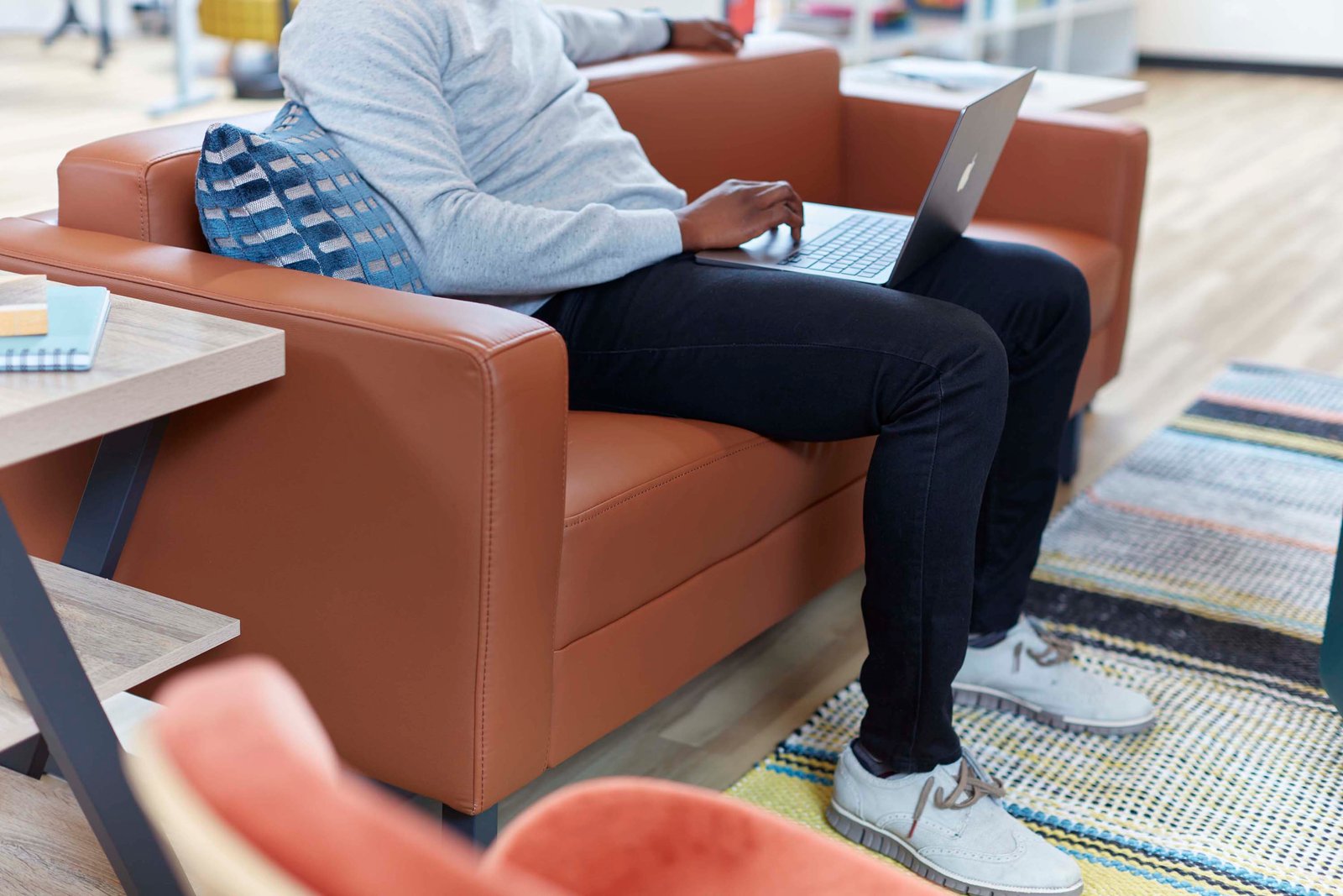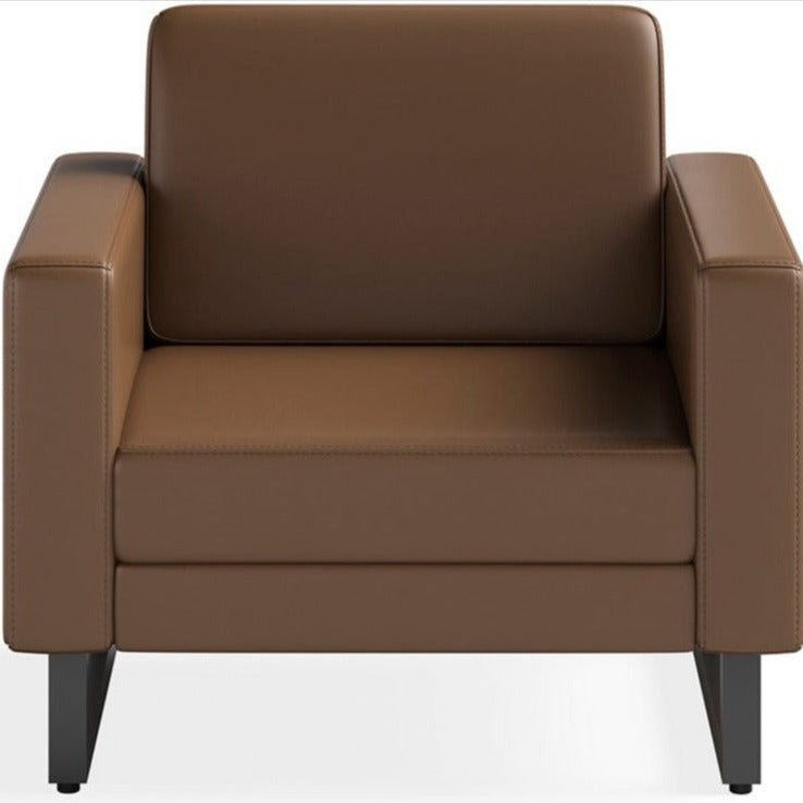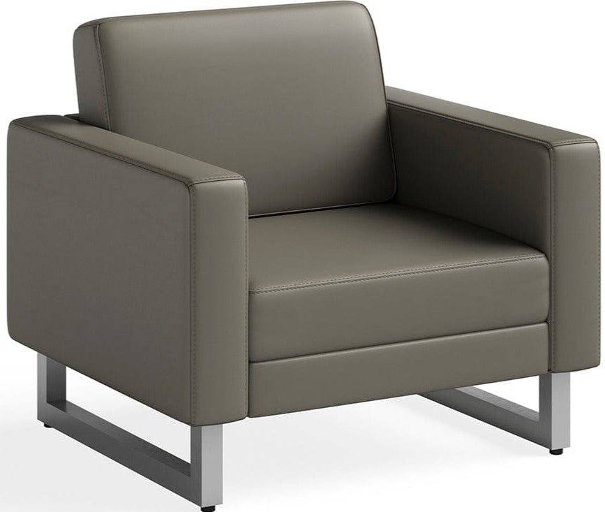 Invite people to take a seat and socialize with colleagues with the comfy Mirella Lounge Chair. The durable, versatile design is an ideal enhancement to complement other Mirella furnishings. The chair’s black, gray, and cognac vinyl options and matching legs and feet, will help you shape a fulfilling, collaborative work experience.