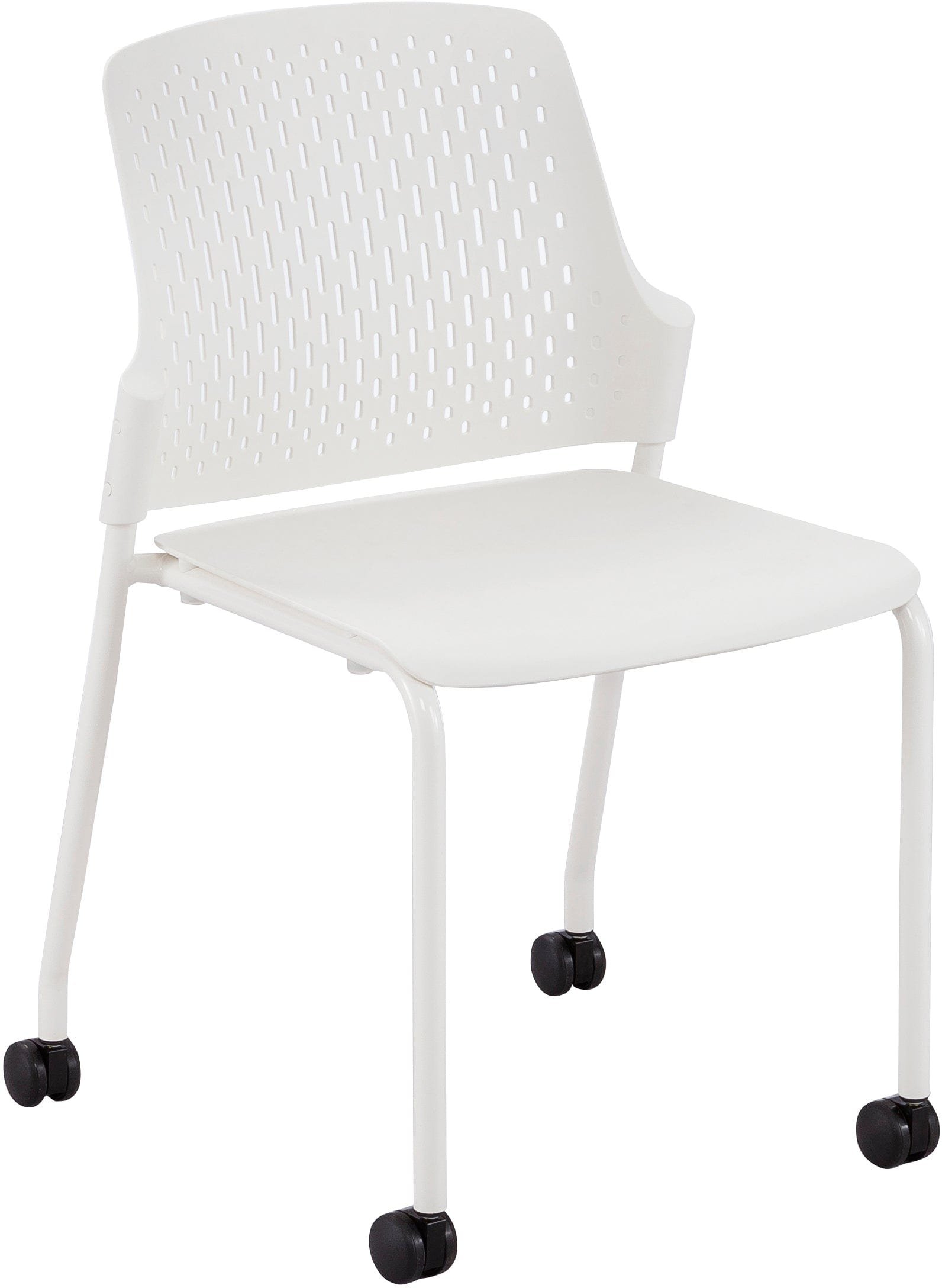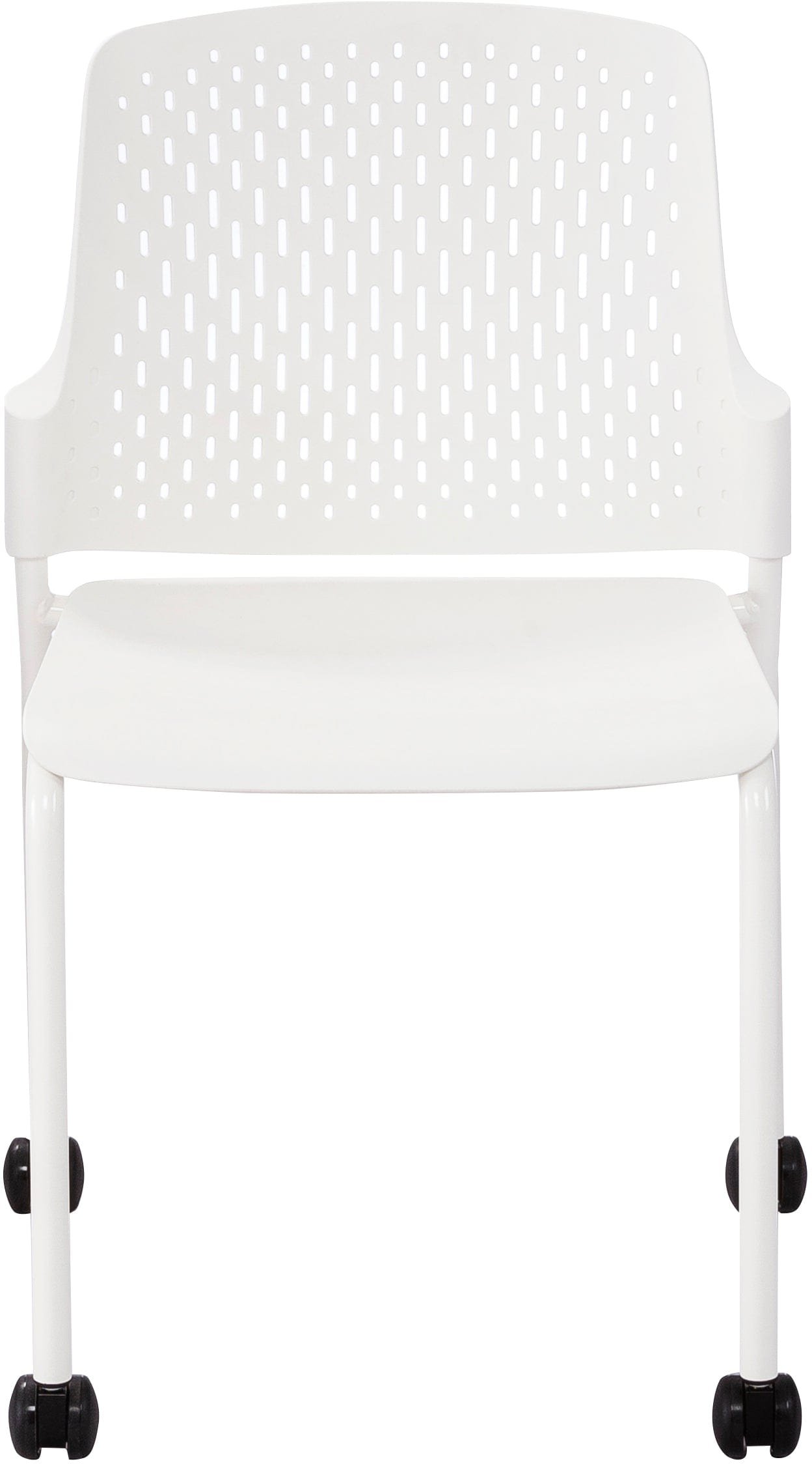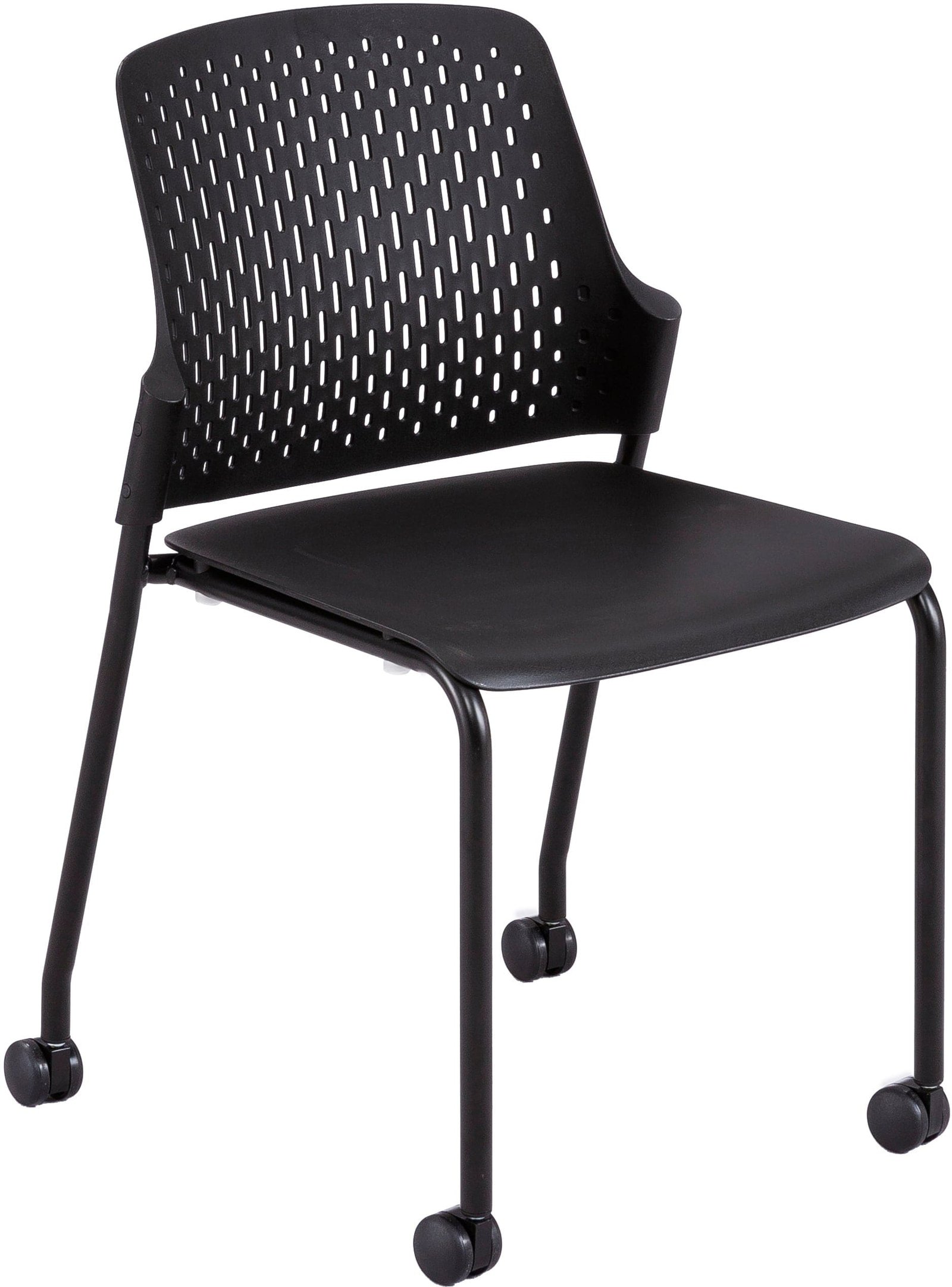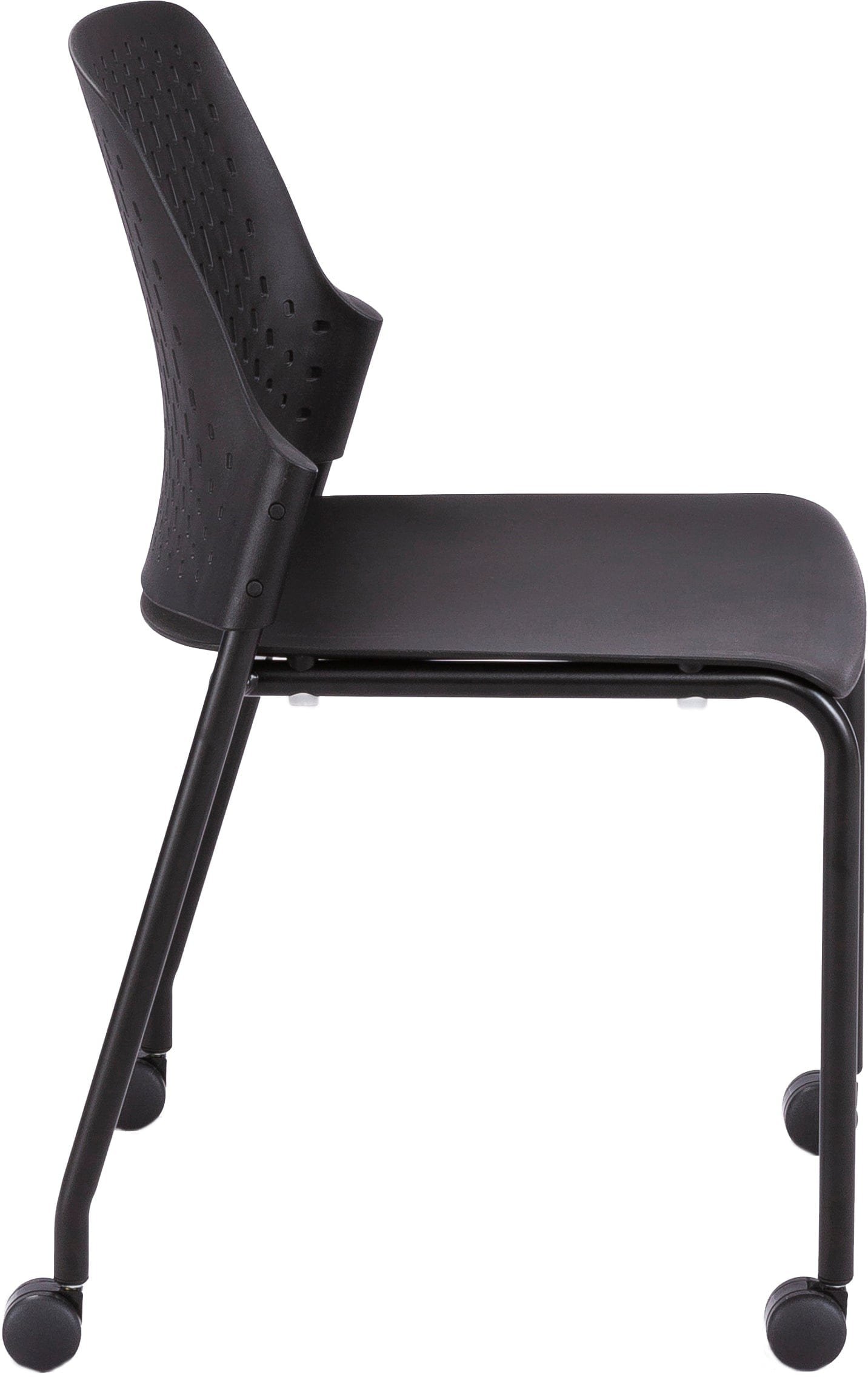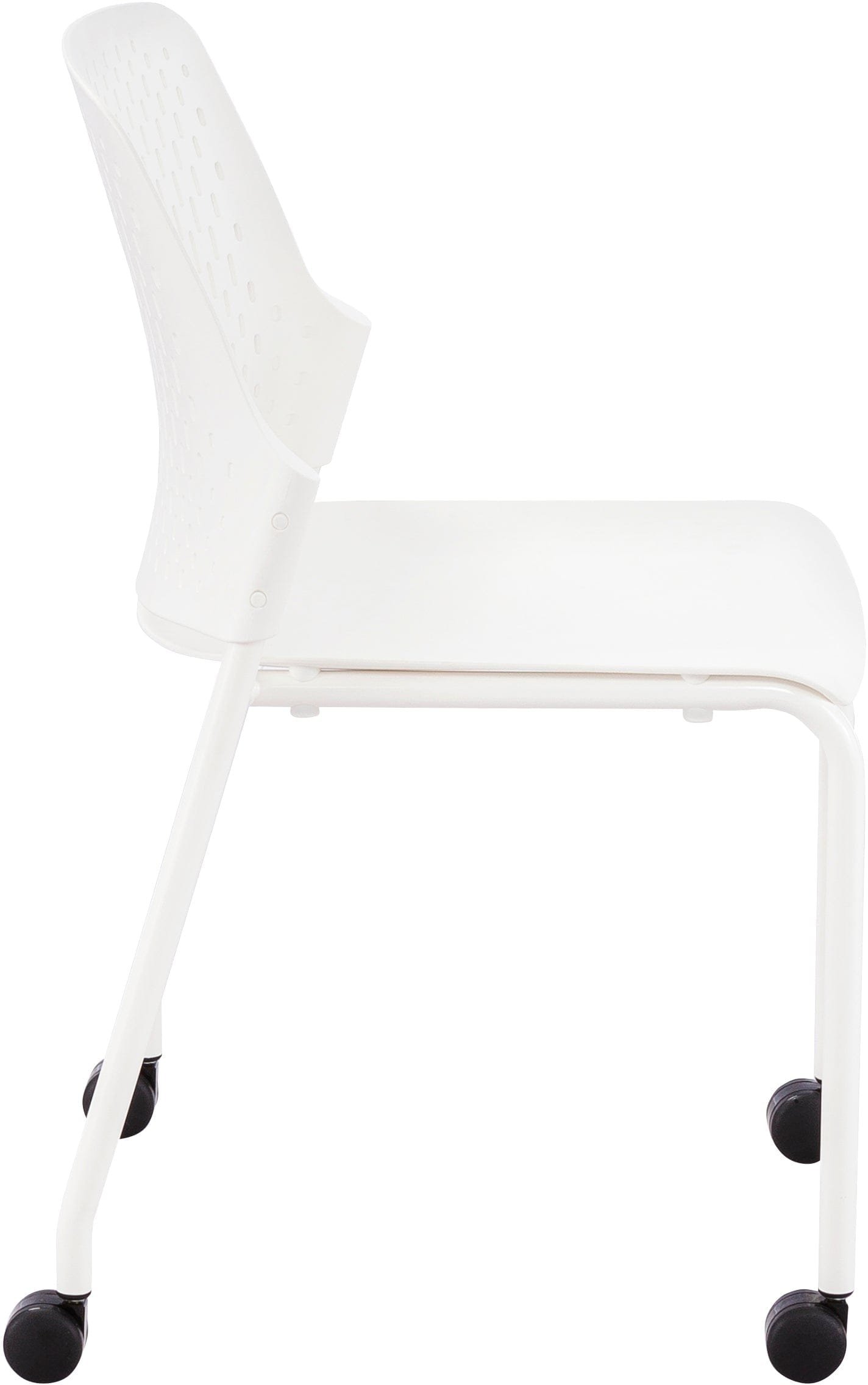 The Next Rolling Stack Chair features a tubular steel frame and a high-impact polypropylene plastic seat, providing strength and stability while remaining lightweight enough to move around easily in a high-traffic environment. The wide contoured seat and patterned perforations on the back keep you and your team cool and comfortable during long training sessions, meetings, and group assemblies.