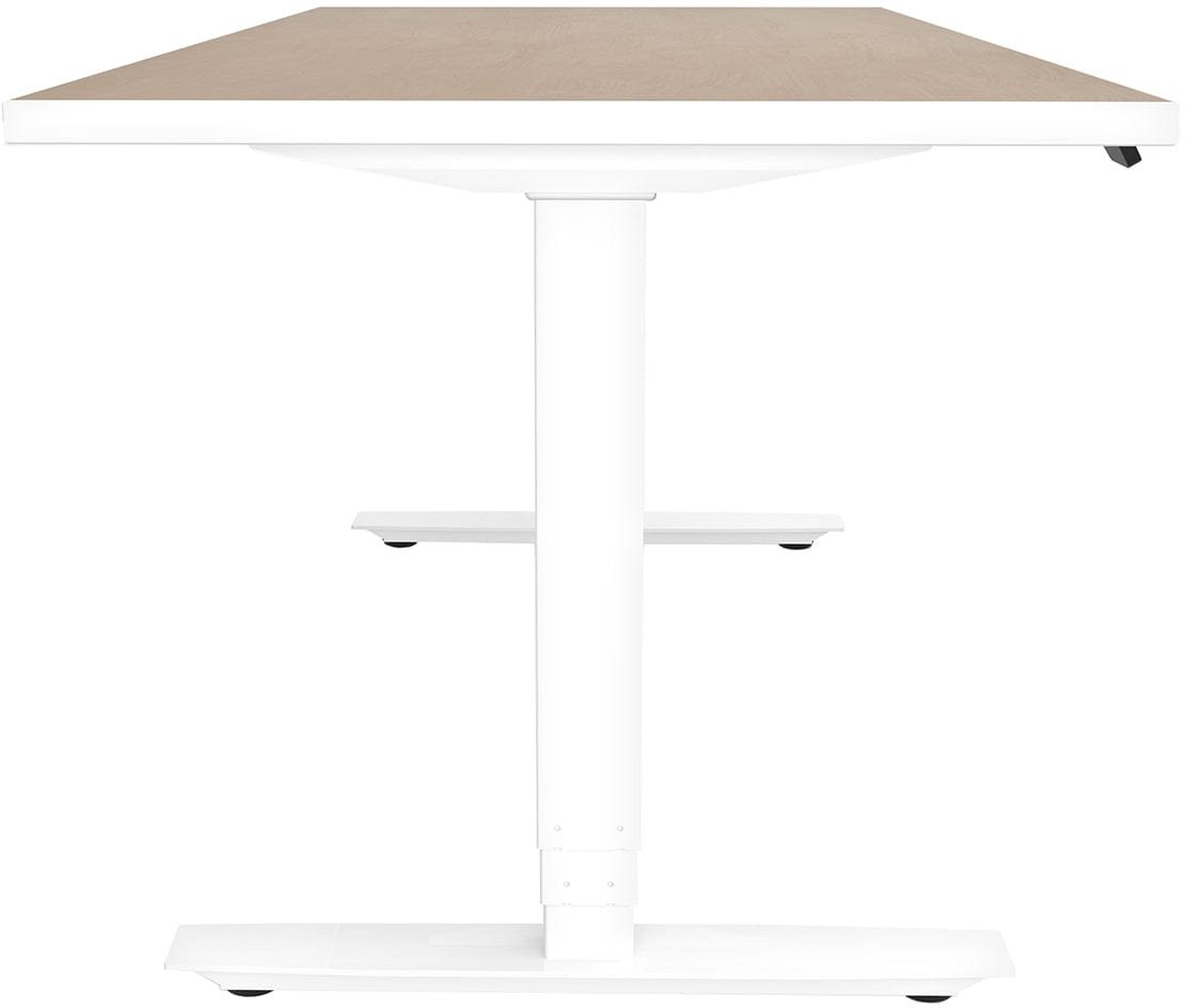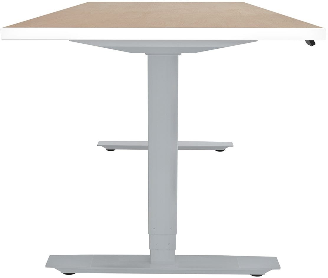 The ML-Series Height-Adjustable Table is a perfect addition to any stylish, quiet workspace. It has dual leg motors that ensure smooth and stable height adjustments and an anti-collision safety feature that prevents accidents. With a 30″ x 60″ rectangle Fusion Maple HPL laminate top and a 3mm White edge band, this table offers a sleek and modern look that fits various aesthetics. The steel powder-coated 3-stage/2-leg base is available in Black, White, or Silver and can be delivered quickly. The ML series is designed to meet high expectations for performance and style.