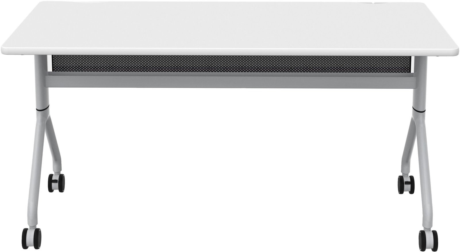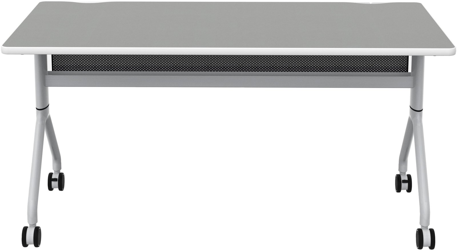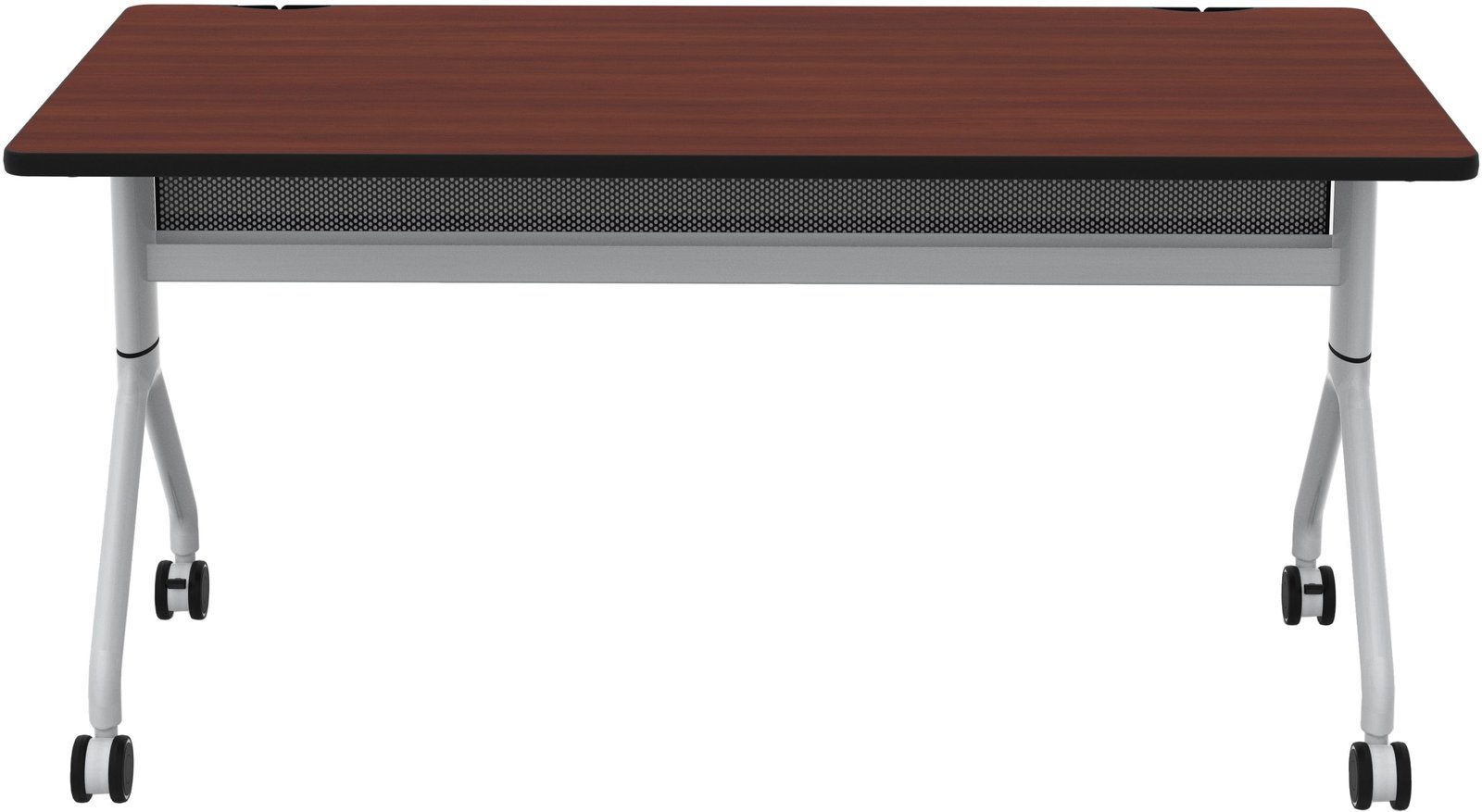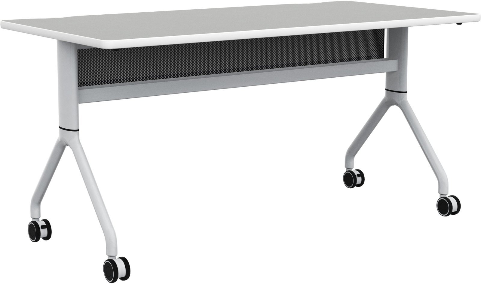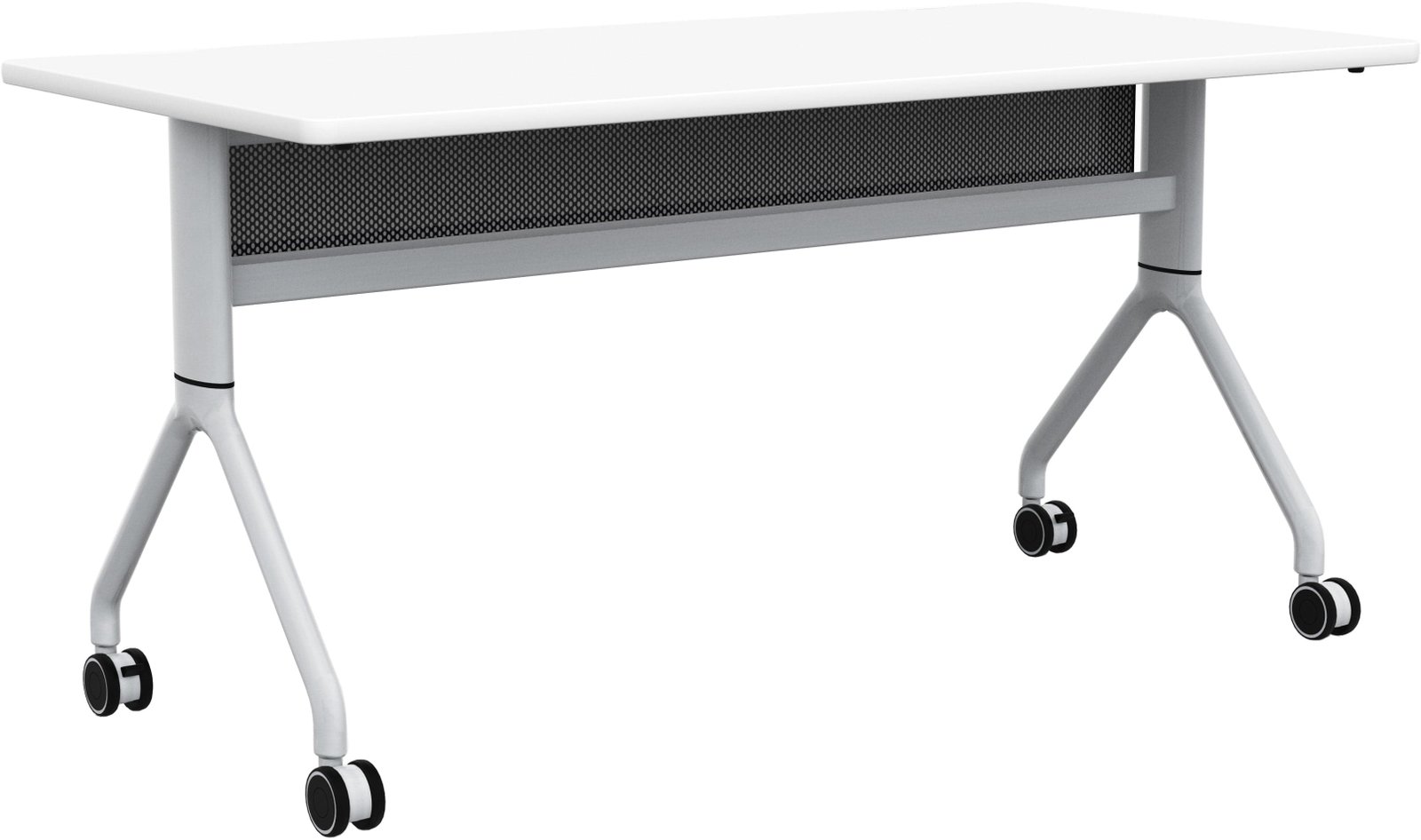 Rumba Flip Tables are versatile and durable, with high-pressure laminate tops, dual wheel casters, and folding and nesting capabilities. You can easily extend a bank of tables or configure them into multiple styles to meet the needs of any workspace using their ganging capabilities. The tops fold down and nest together for compact storage when not in use, and they come with integrated cable management and mesh modesty panels. These tables are perfect for training rooms, education environments, collaboration areas, open floor office plans, and conference rooms. Choose from three laminate options (they all have a silver metal base), all available on our quick ship program.