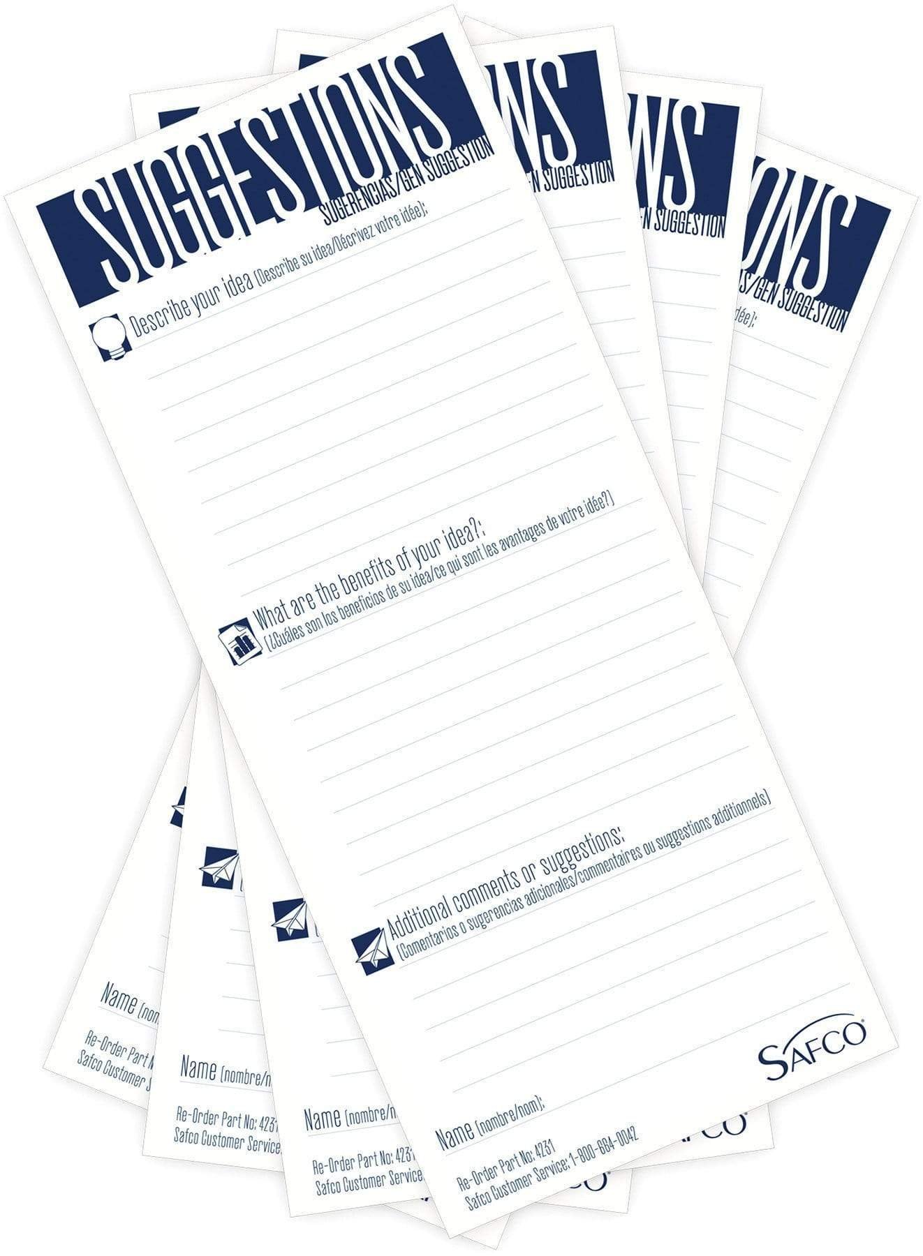 - Suggestion box refill pack – 25 cards per pack; 60 packs per carton