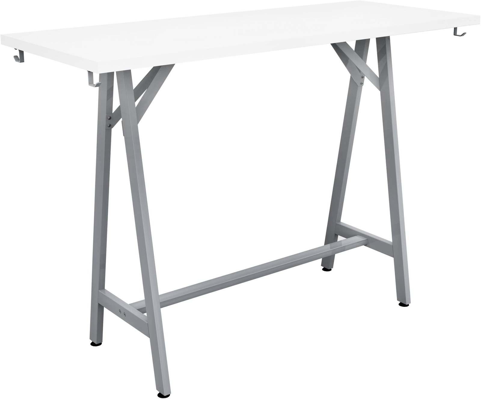 The Spark Teaming Table is ideal for both individual work and impromptu team meetings. Despite its small footprint, it can serve as a social and teaming area, making it perfect for spaces where there is limited room. Its high-pressure laminate worksurface is highly durable, and its steel A-frame style base with a built-in footrest makes it a versatile option that can fit almost anywhere. The table also has built-in hooks under the tabletop for storing personal items conveniently. The footrest offers support while standing, which encourages shifting positions for increased movement.