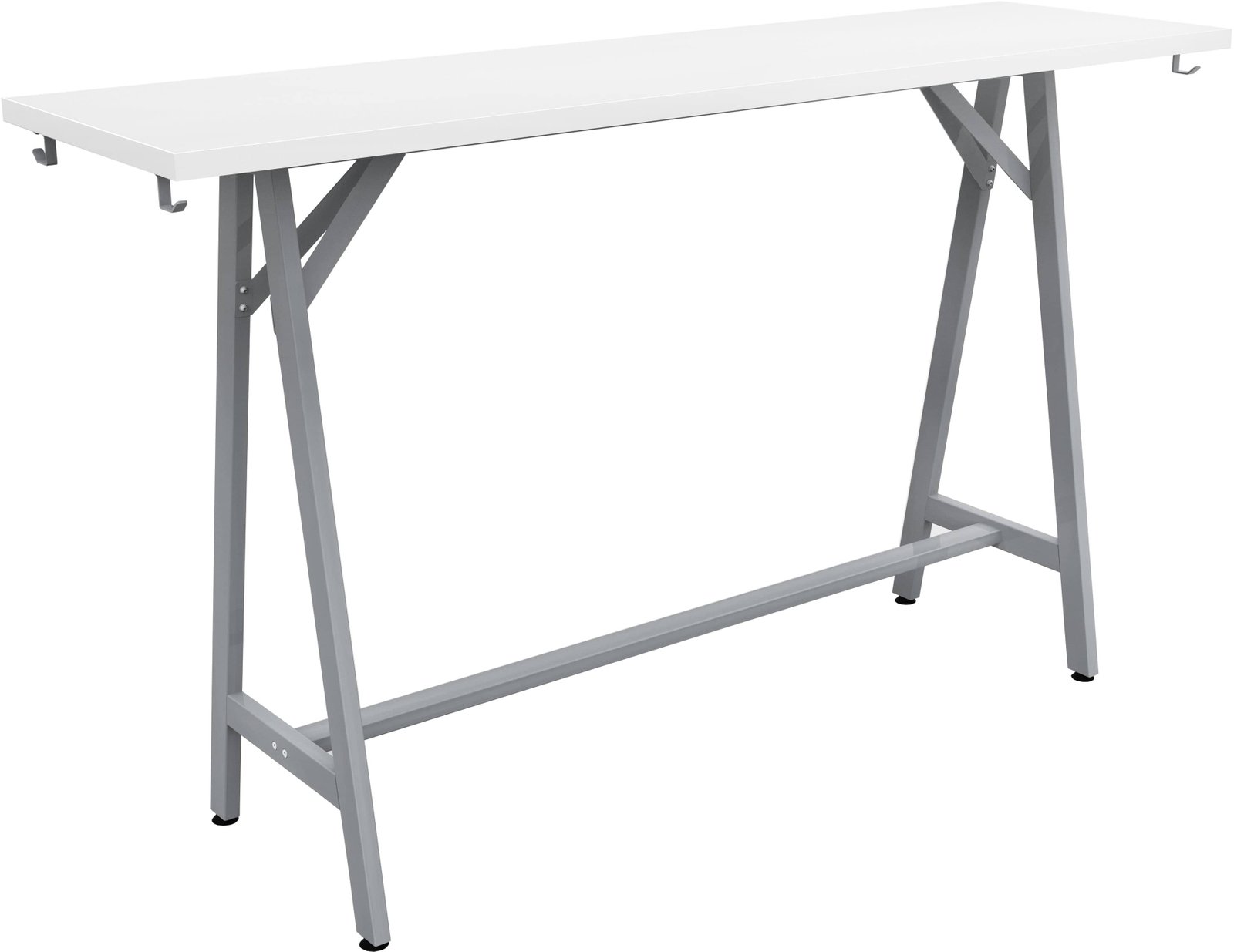 The Spark Teaming Table is perfect for both individual work and impromptu team meetings. Its small footprint allows for social and teaming areas without requiring a lot of space. The high-pressure laminate worksurface is highly durable and, when combined with the steel A-frame style base that has a built-in footrest, Spark can fit into almost any workspace. The table’s built-in hooks beneath the tabletop provide convenient storage for personal items, and the footrest provides support while standing, which encourages shifting positions for increased movement and better posture.