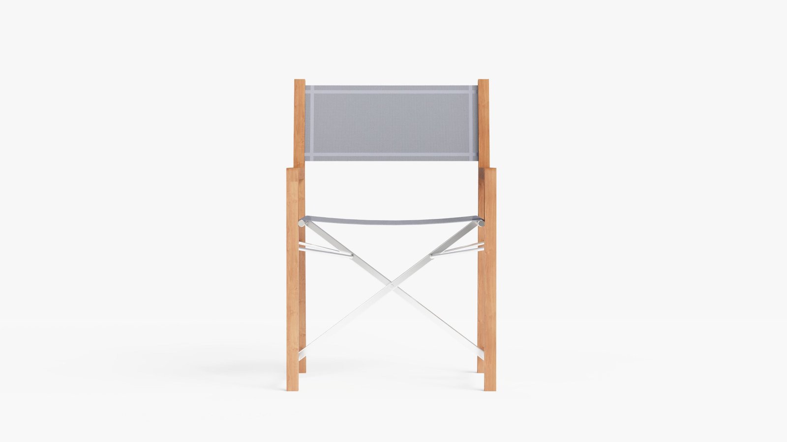 FSC® Certified Grade-A Teak Director’s Dining Chair with a foldable design for easy transportation and storage. All-weather fabric repels water, resists mildew and endures sun, heat, and rain without fading.
