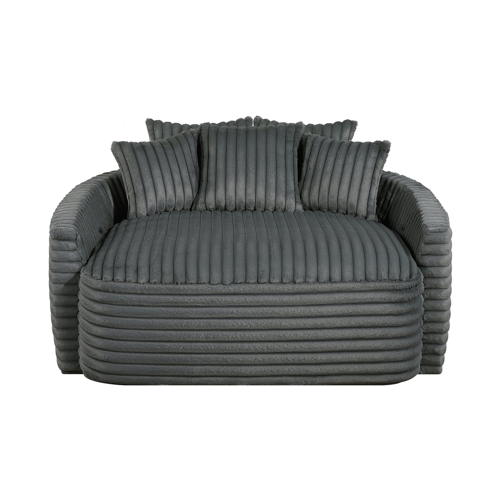 Experience luxurious comfort and modern convenience with this oversized lounge chair, designed to provide a plush and inviting seating experience while keeping your devices charged. Featuring sumptuous channel-tufted upholstery and generously cushioned seating, this chair offers the perfect place to unwind, whether you’re reading, watching TV, or relaxing after a long day. The integrated USB charging ports ensure your phone, tablet, or other devices stay powered without the hassle of extra cords. With its spacious design and matching accent pillows, this statement piece is ideal for living rooms, bedrooms, or media rooms, seamlessly combining style, functionality, and next-level comfort.