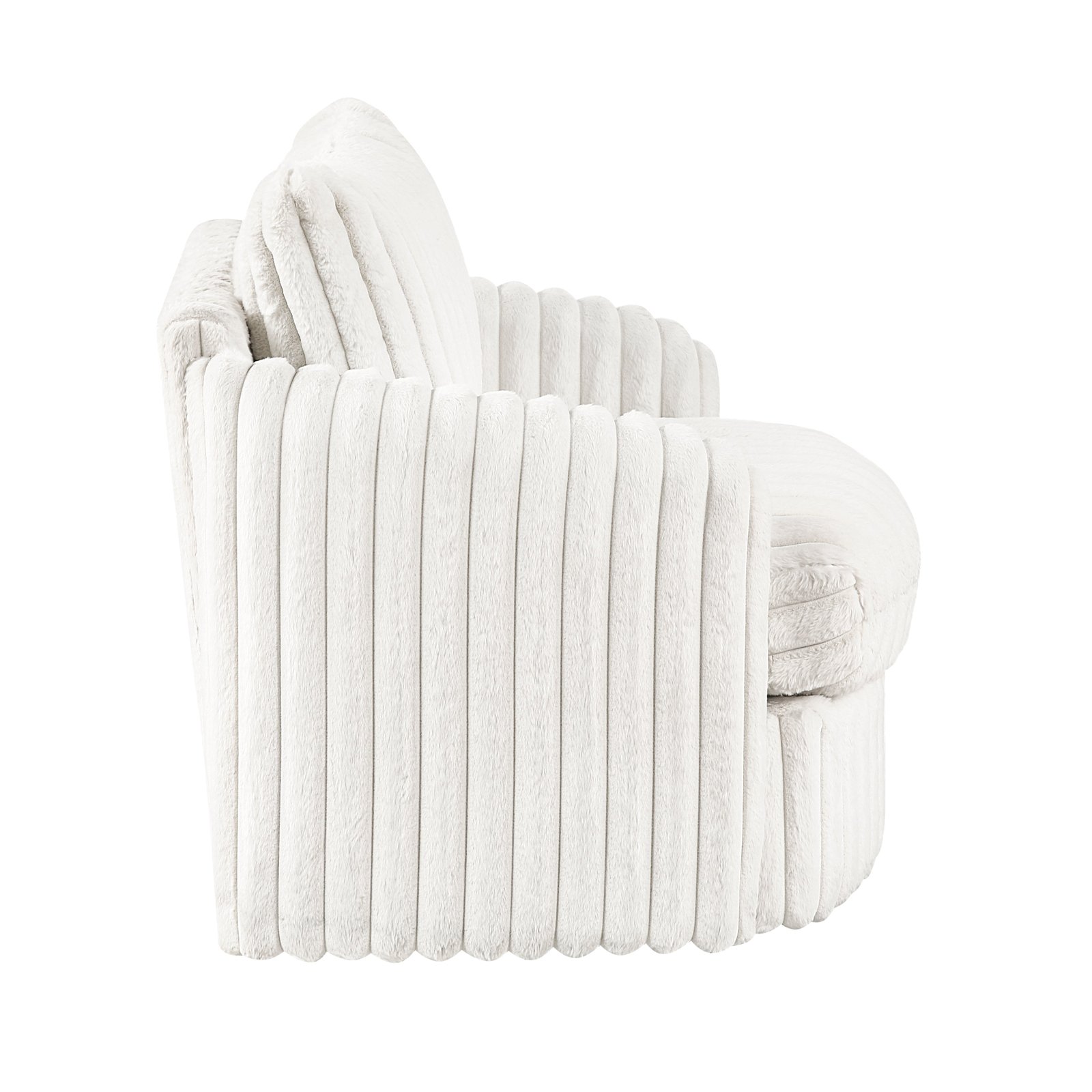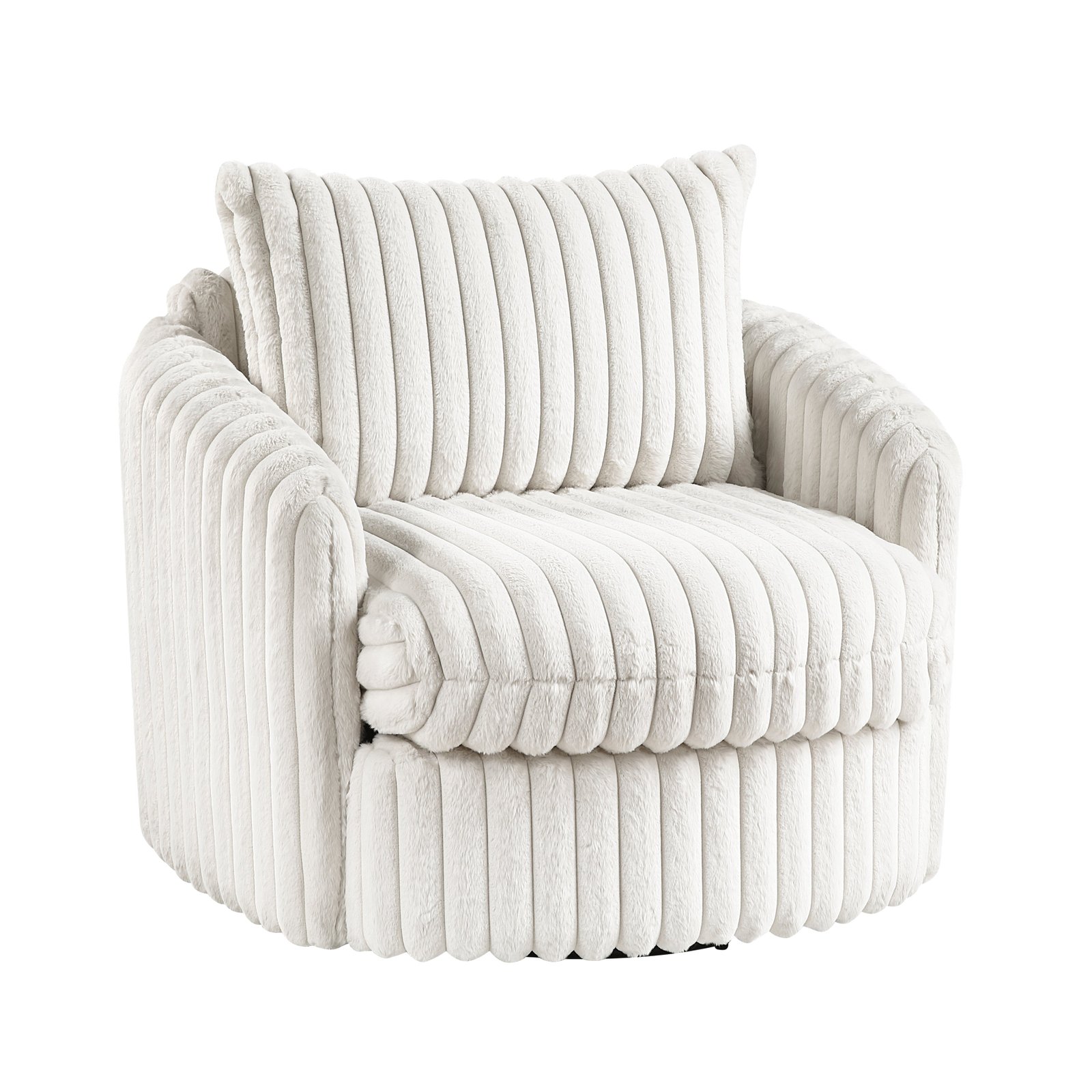 Elevate your home with this luxuriously soft 360° swivel accent chair, designed for modern elegance and ultimate comfort. Featuring a sumptuous channel-tufted upholstery, this chair delivers a bold yet inviting look that seamlessly blends into contemporary, modern, and glam interiors. The smooth 360-degree swivel base allows for effortless movement, making it perfect for lounging, reading, or socializing. Crafted with plush cushioning and a generously sized back pillow, this chair offers superior support and relaxation while adding a statement-making touch to any living room, bedroom, or home office.