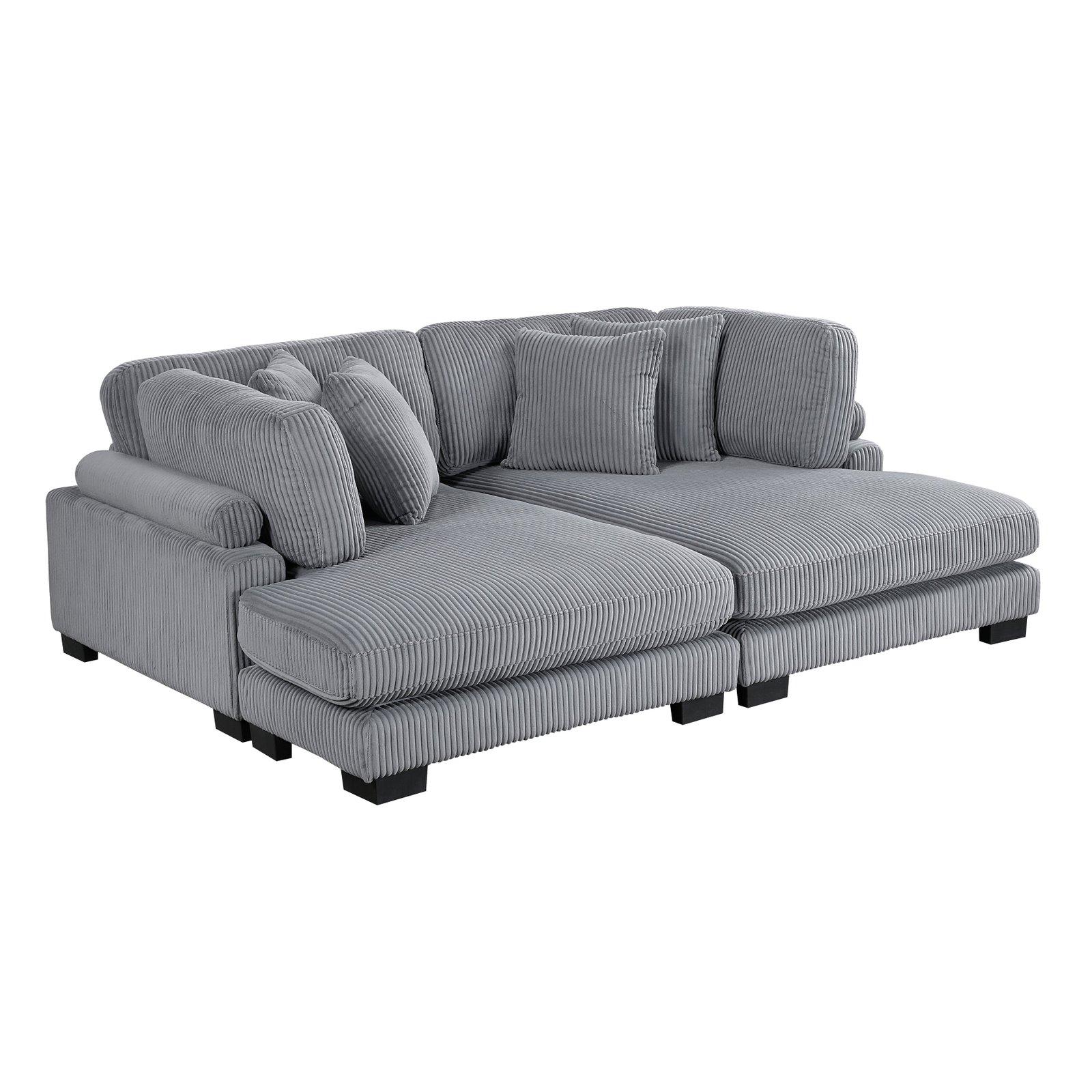 Configurable to your available space, the Traverse Collection allows for the addition and detachment of pieces for a customized seating experience. The 2-piece sectional configuration consists of two chaises. The beige corduroy fabric upholstery creates a plush expanse for a soft touch experience.