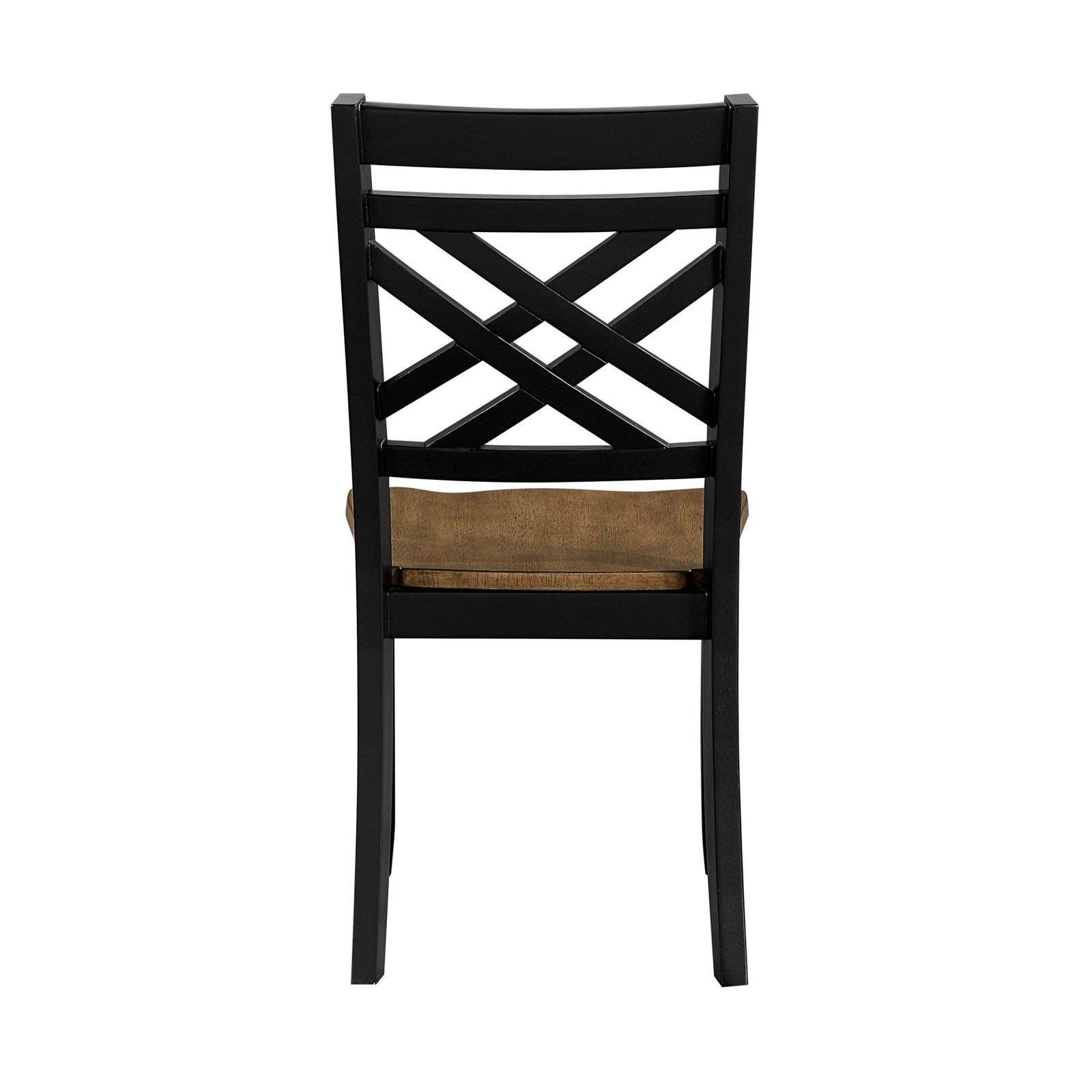 Refresh your dining area with this charming two-tone side chair, a perfect blend of rustic farmhouse style and modern durability. Constructed from high-quality wood and engineered wood with a resilient rubberwood veneer, this chair features a classic X-back design that adds architectural interest and an airy feel to any table. The contoured wooden seat is finished in a warm, natural brown, beautifully contrasted by a sleek black frame and legs, making it a versatile choice for kitchen nooks, dining rooms, or casual bistros. Sturdy and stylish, this seating option provides reliable comfort and a timeless aesthetic for family meals and gatherings.