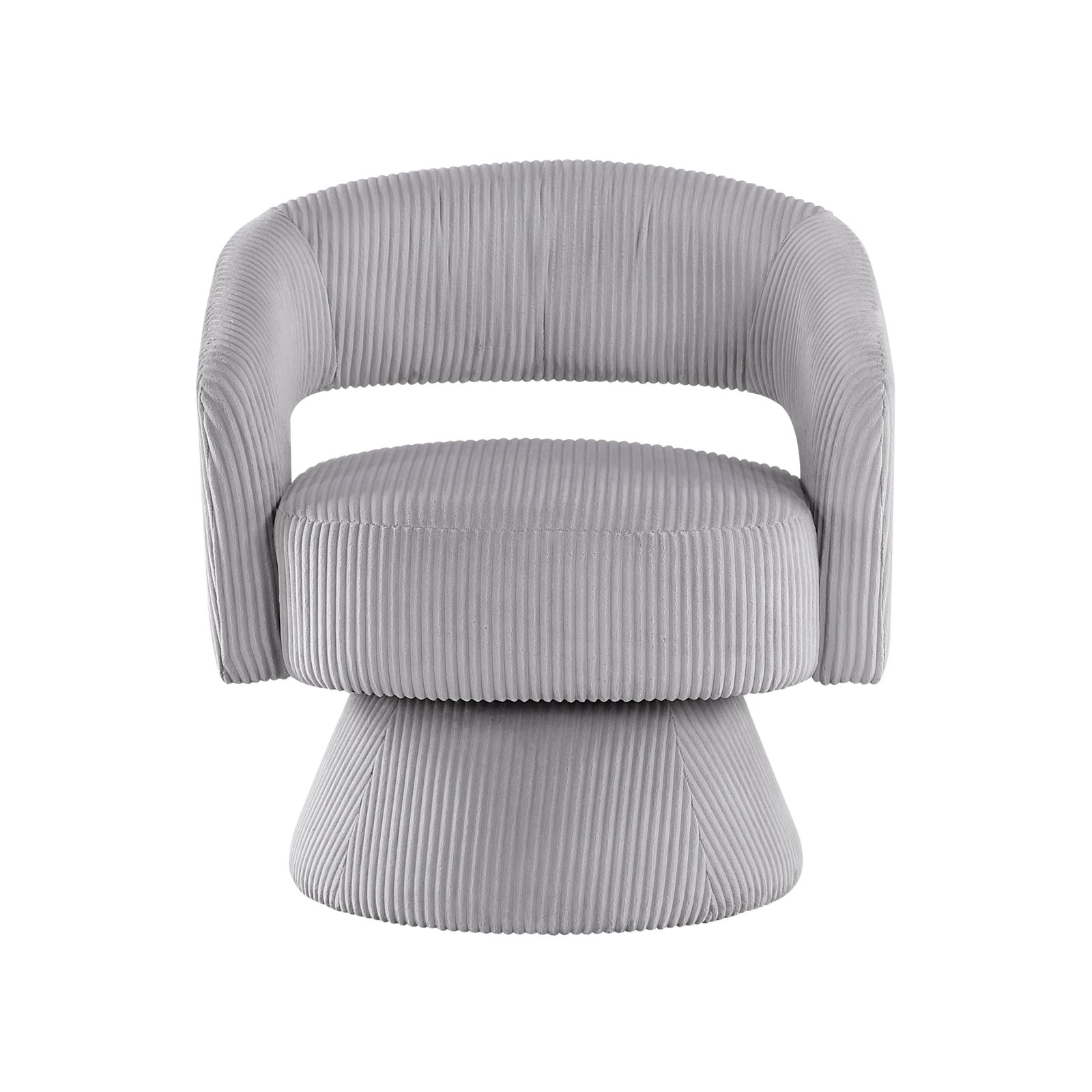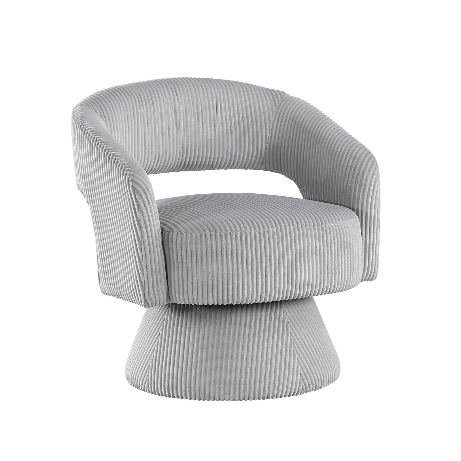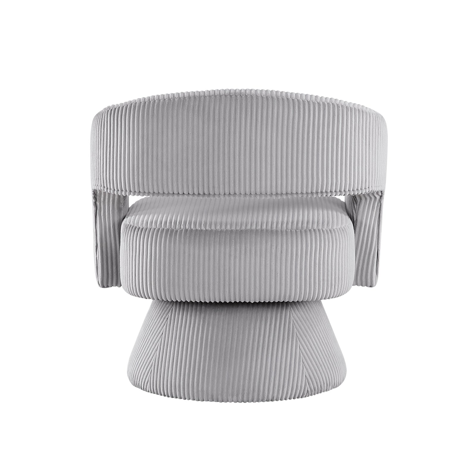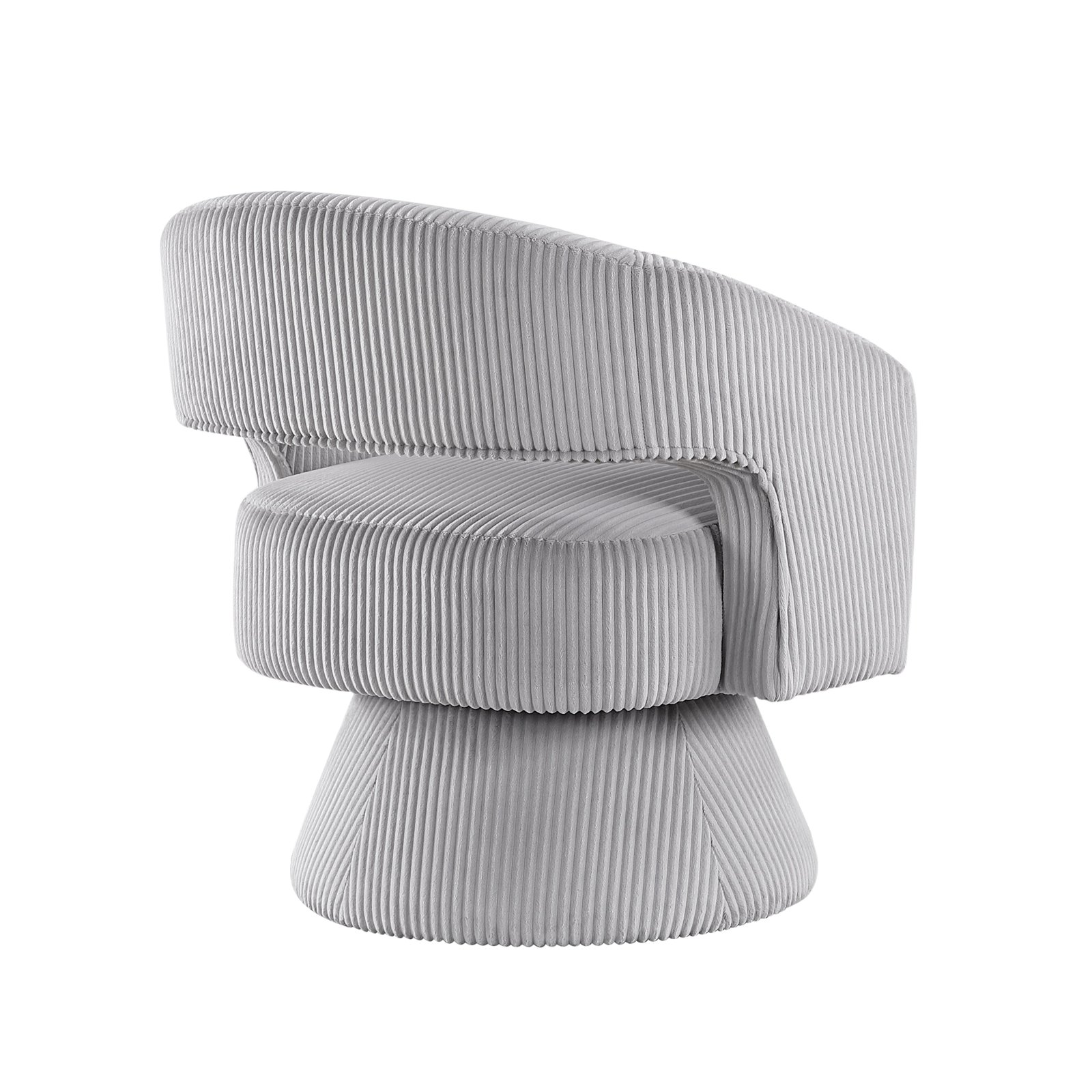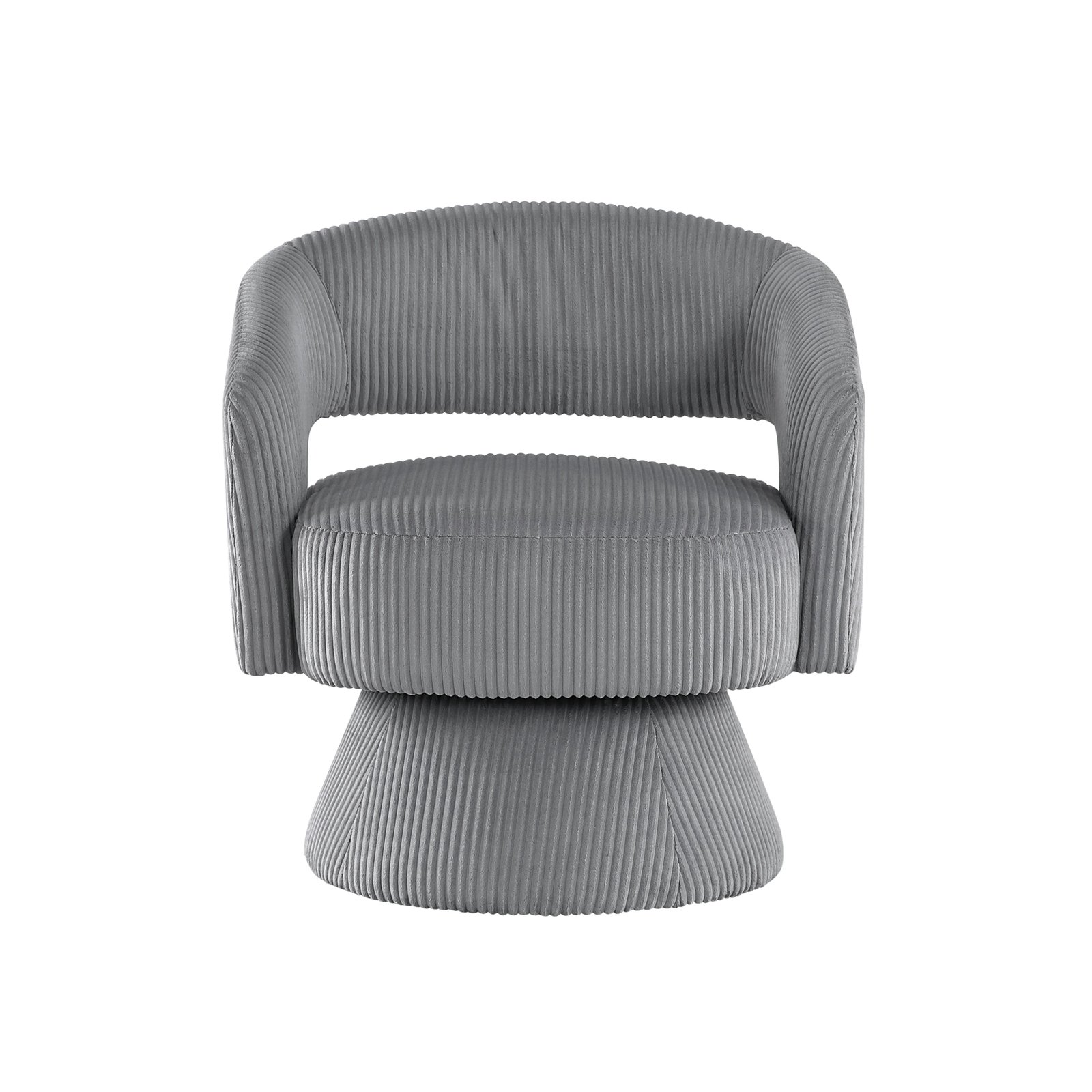 Elevate your home with this modern corduroy swivel accent chair, featuring a unique textured design and soft corduroy upholstery. Perfect for those seeking a blend of style and comfort, this chair’s eye-catching shape and luxurious fabric add a sophisticated touch to any space. The 360-degree swivel base allows for versatile movement, making it an ideal choice for living rooms, bedrooms, or stylish home offices. Its minimalist aesthetic and plush seating bring both functionality and elegance to contemporary interiors.