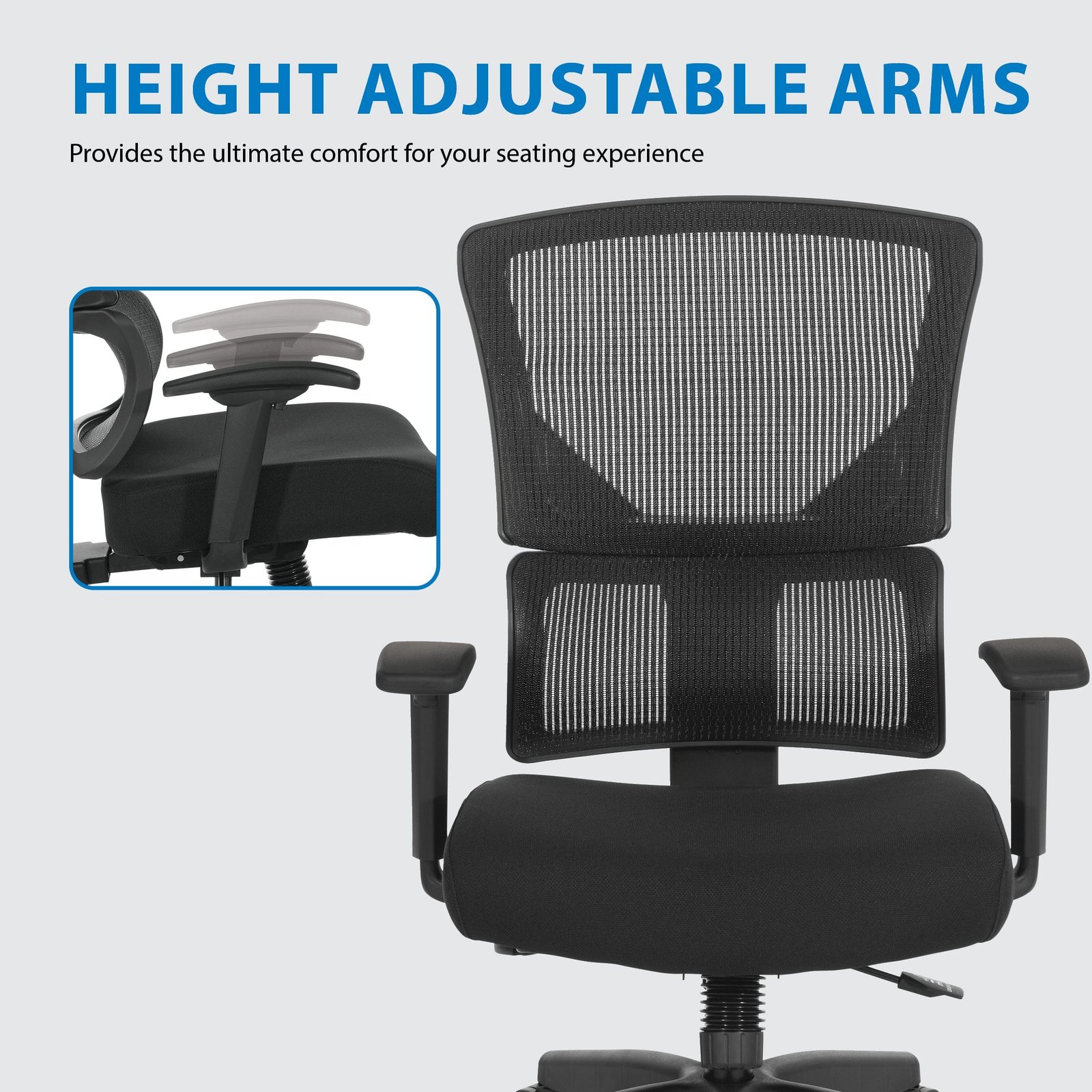 - Height adjustable PU padded arms
